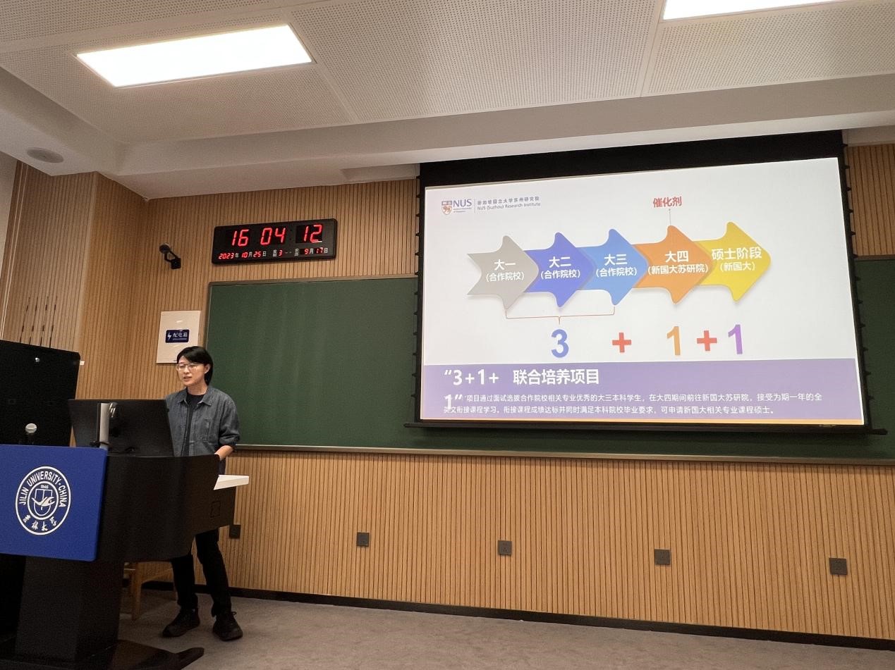 与新加坡国立大学“3+1+1”联合培养项目宣讲会在南岭校区逸夫教学楼B313成功举行。学院外事秘书杨美晨,辅导员严冬以及学院本科生代表参加了本次活动。