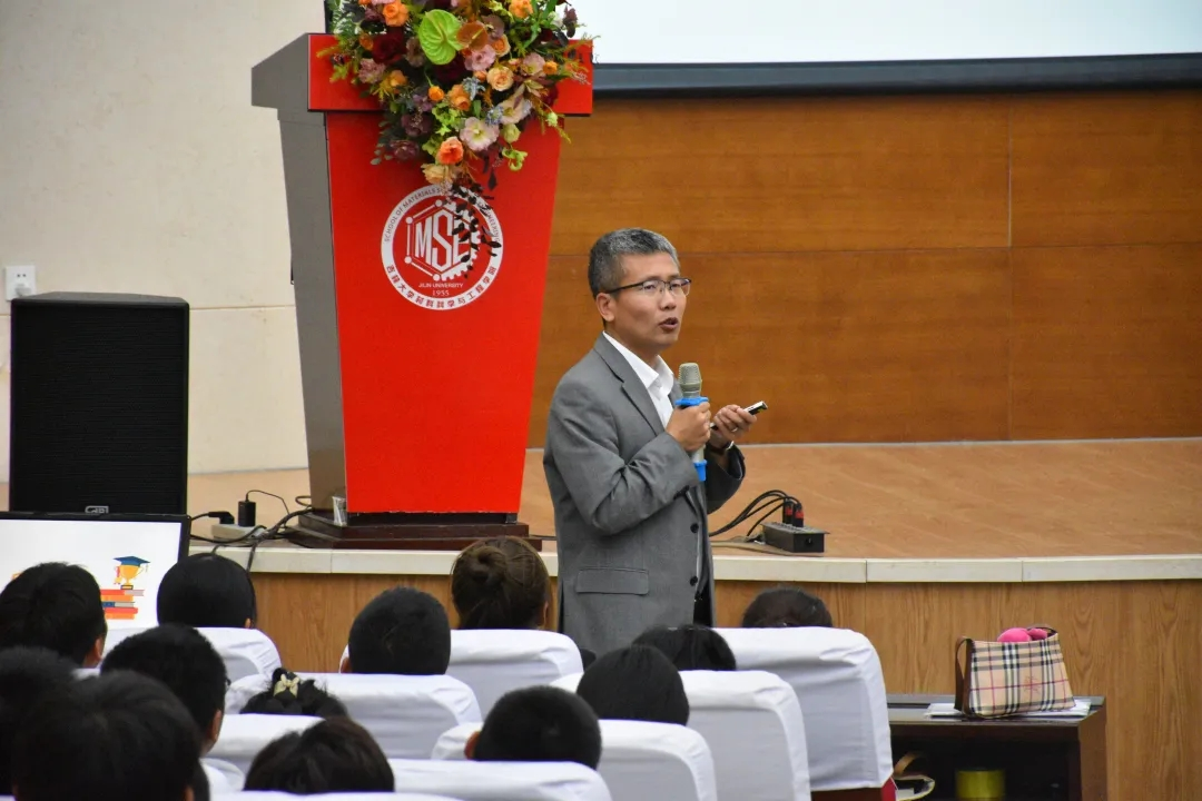 的发展与前景,说明了材料是走在技术前沿的学科,目前市场地位稳步上升。随后从学院历史沿革,双一流学科建设,科研实力,师资队伍,人才工作,优秀校友等方面进行了介绍。最后,张院长以“充实生活,提升自己”为立足点,对新生大学生活提出了三点建议,一要努力学习,二要拓展知识,三要学以致用。相信这三点建议一定可以帮助新同学更好地适应大学生活,规划人生未来,能够开拓思维、迎接挑战、不畏艰难,硕果累累,不负韶华!