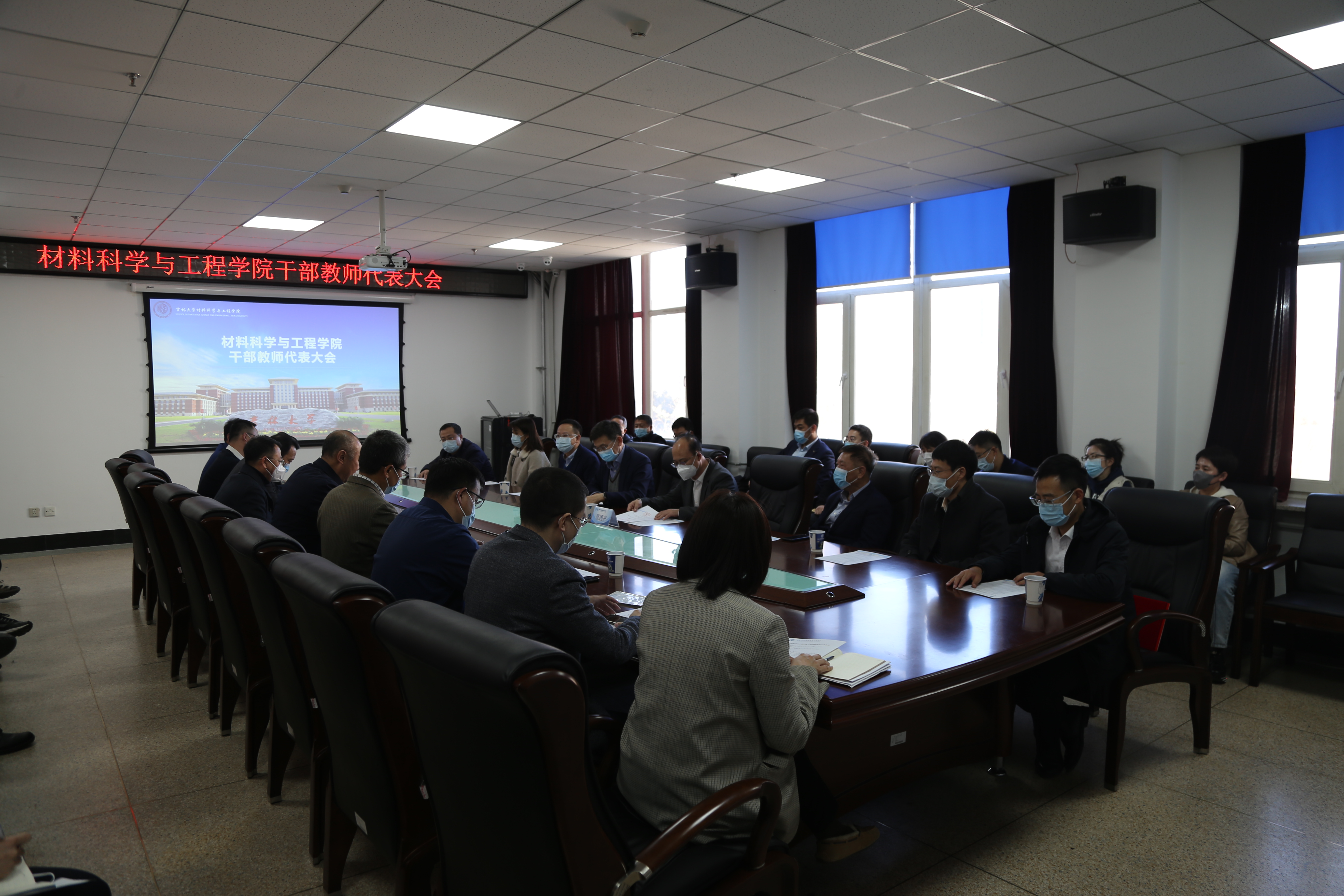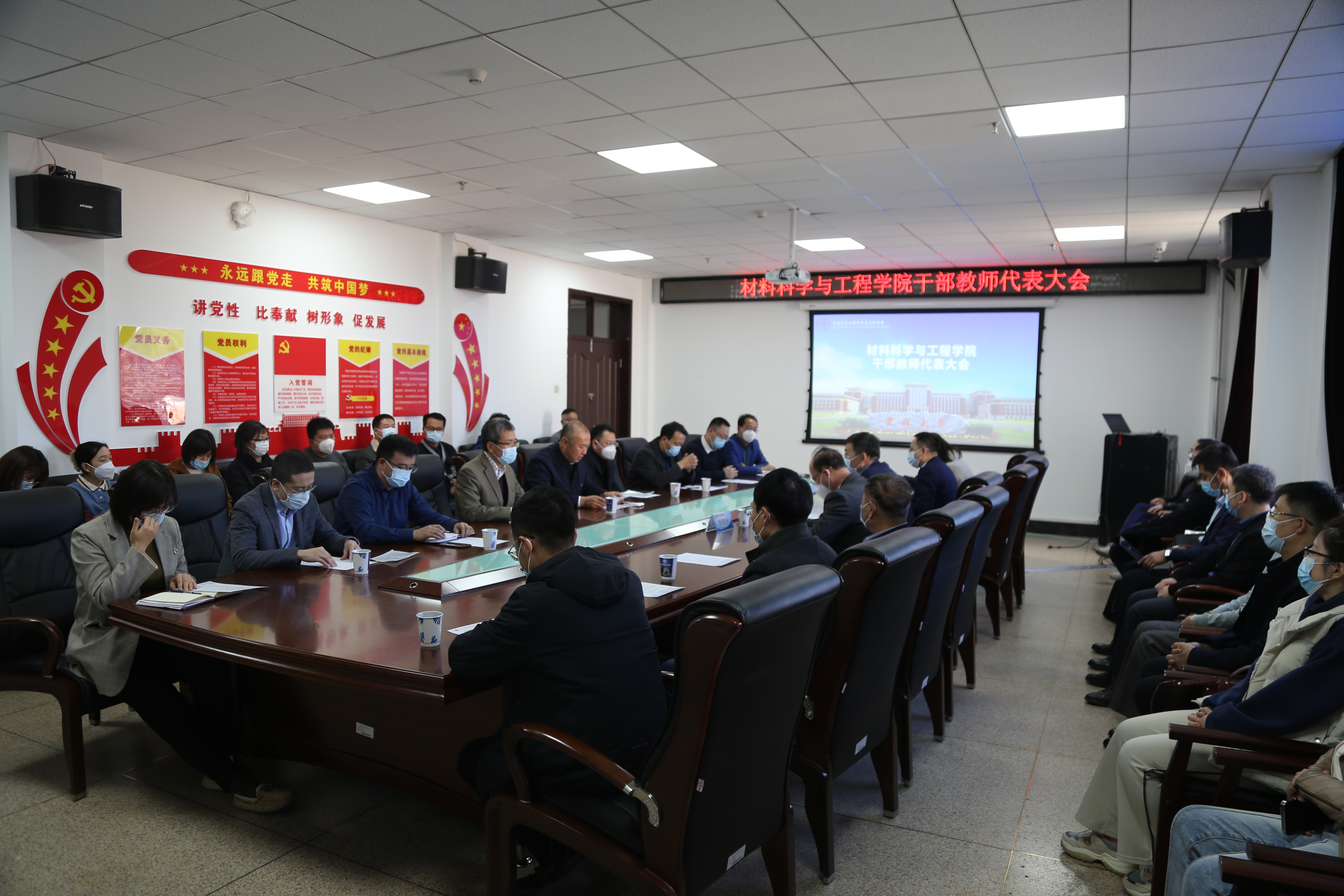 在南岭校区机械材料馆410会议室召开干部教师代表大会。学校党委常委、常务副校长郑伟涛,学校党委常委、组织部部长张国兴,以及学院领导班子全体成员,党委委员、纪委委员,学术委员会、学位评定分委员会、教学委员会主要负责人,依托建设的科研单位负责人,各系、行政科室主要负责人,教工党支部书记参加会议。会议由学院党委书记刘远主持。