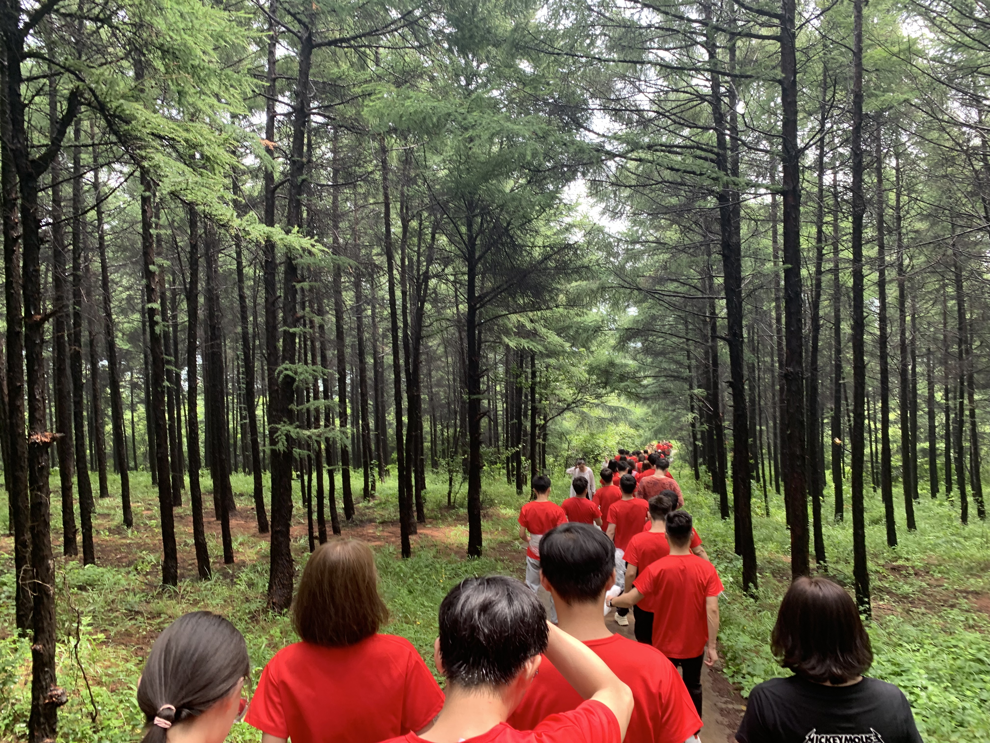 第一站同学和老师们来到了四平保卫战遗址——塔子山。冒着连绵的细雨,走在郁郁葱葱的山路上,昔日战争的硝烟早已散去,如今的塔子山风景秀美,四周平静安宁,这是革命先烈用自己的生命为我们换来的幸福生活。结合现场教学的讲解,让同学们更加体验了革命征程之艰难,夺取革命胜利之不易,抒革命豪情,强革命志向。