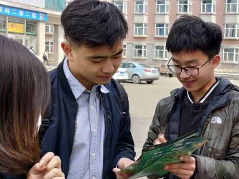 阳光爱心学校于二餐、四餐门前进行摆摊宣传“播种一颗种子”志愿活动。南岭校区全体学生均可参加活动。