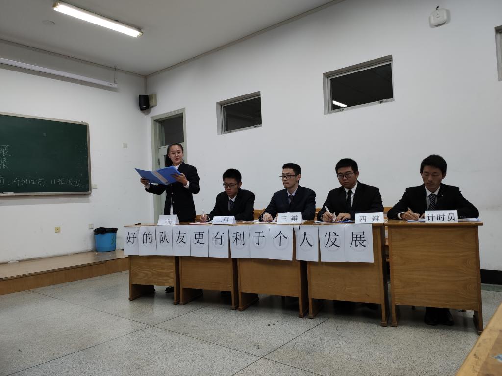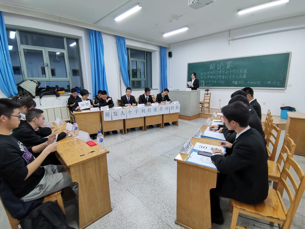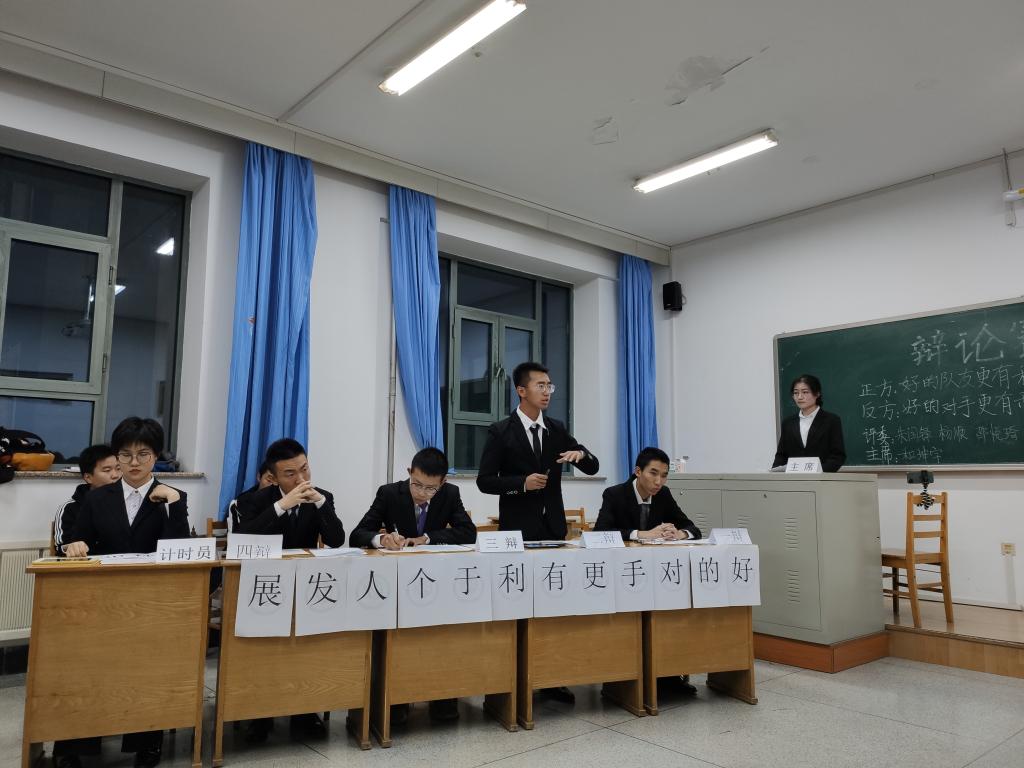 本次半决赛的辩题是“拿起与放下哪个重要”及“好的队友与对手哪个更有利于个人发展”。 立论环节正反双方基于各自论点,用严谨的逻辑进行辩证并以实例佐证,向对方提出质询,不断抛出有利论据巩固己方论点。在对辩盘问阶段,双方针锋相对互不相让,结合实践,引例数据反驳对方。赛场上气氛紧张,逐渐进入白热化阶段。在激烈的自由辩论环节,双方辩手使出浑身解数,完美地展现了语言的犀利和思维的敏捷,场上充斥着思想的碰撞与智慧的交锋。最后,正反双方分别总结陈词,结合本队伍的论据,以清晰明确的思路和谨慎而又巧妙的言辞对己方论点进行总结升华,给观众和评委们留下了深刻的印象。辩论结束后,在场评委经过慎重且认真的商议,对双方辩手的表现和内容做出了中肯的分析和点评,最后宣布获胜方为9班与11班。本次辩论赛半决赛圆满完成。