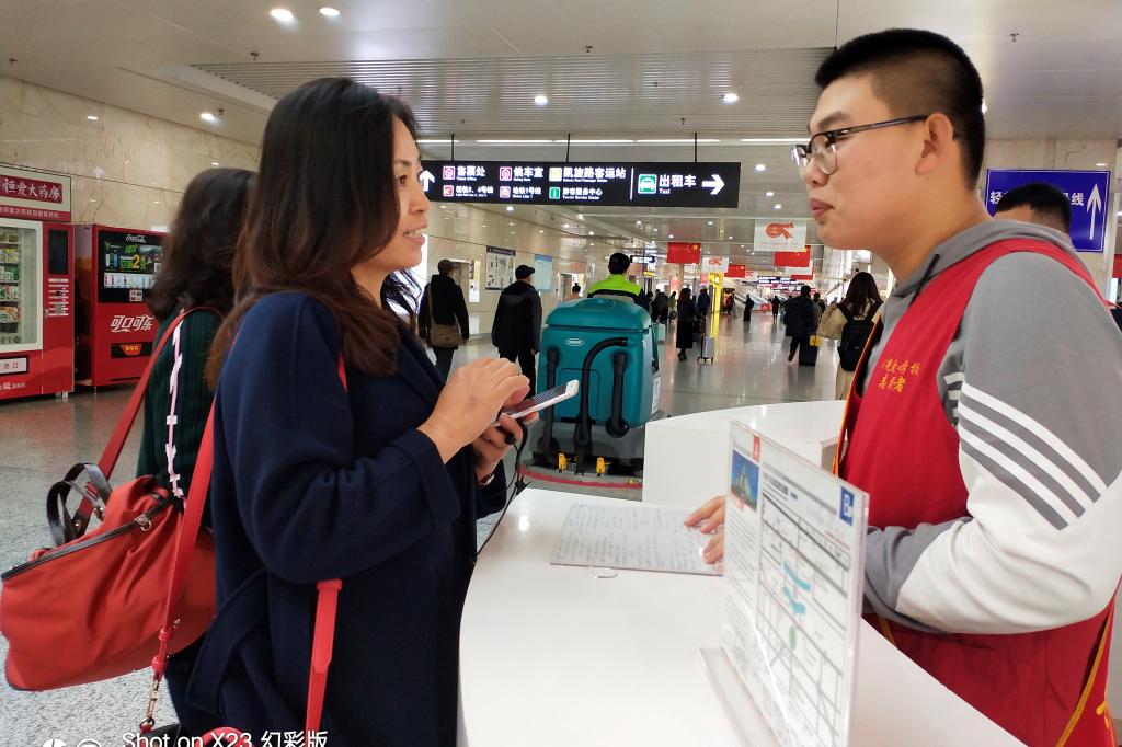 22日下午,在阳光爱心学校志工部负责人的带领下,七名新生志愿者乘地铁前往火车站。志愿者们换上象征志愿者身份的红马甲,在了解熟悉了站内设施分布、附近交通路线后,分别于北换乘中心的两个固定岗及南换乘中心的流动岗开展爱心活动。活动内容主要包括帮助旅客规划路线,帮助老人使用手机与亲人联系汇合,以及配合火车站的工作人员维持公共秩序等。本次活动旨在降低火车站在公共服务方面的压力,为旅客解决出行遇到的困难。活动中,同学们表现积极,满怀温情与热忱,尽心尽力地帮助着每一位旅客,穿梭于火车站的红马甲成为一道靓丽的风景线。在这次活动中,志愿者们在获得成就感的同时,也对社会服务有了更全面深刻的认识,从中得到锤炼,这一活动更是向社会展示了吉大学子的气度风貌。16:30左右,在客流高峰结束后,七名新生志愿者跟随领队负责人回到色色啦
