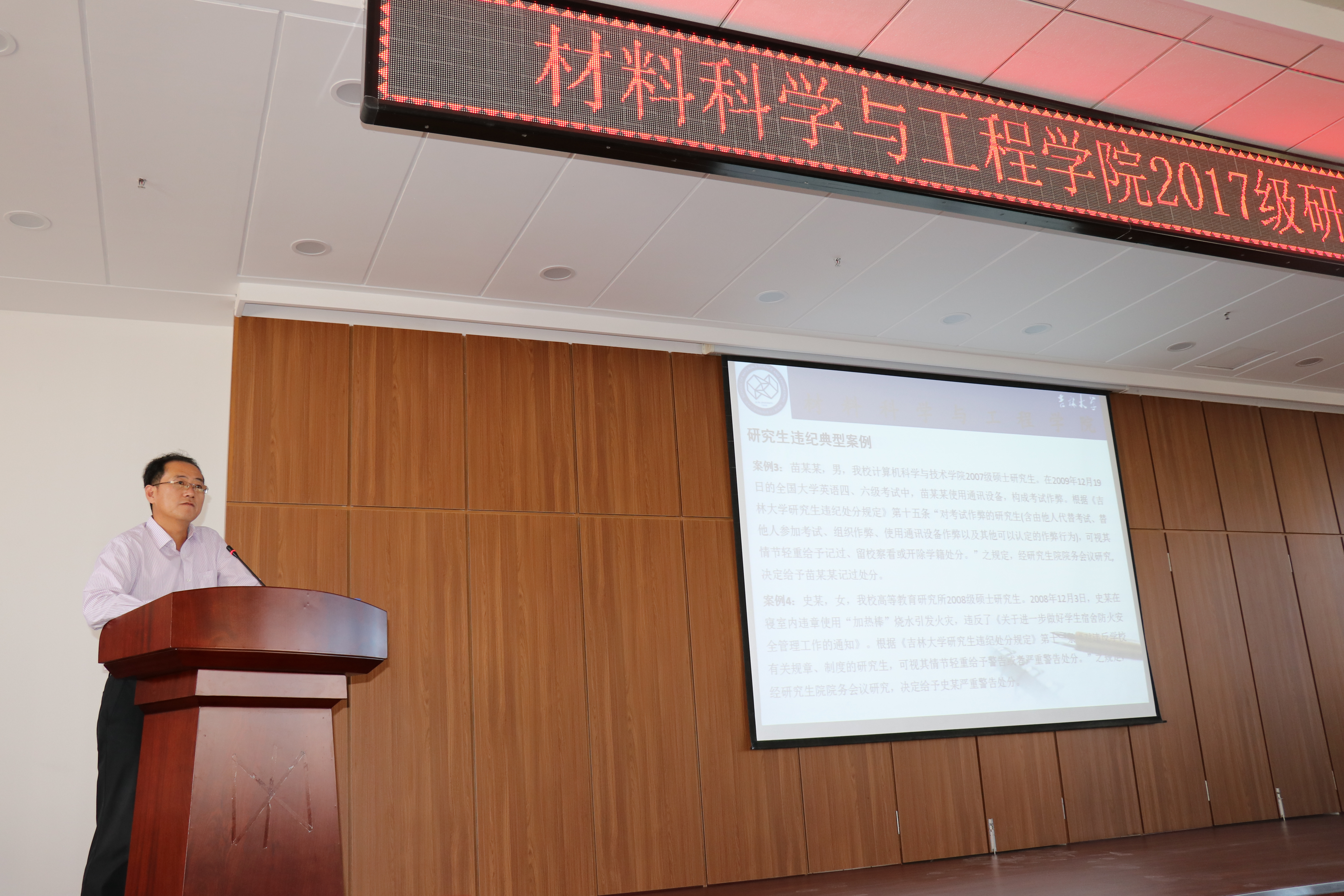 党委副书记曲贵文向2017级研究生新生详细讲解了学院建设及学风建设内容。