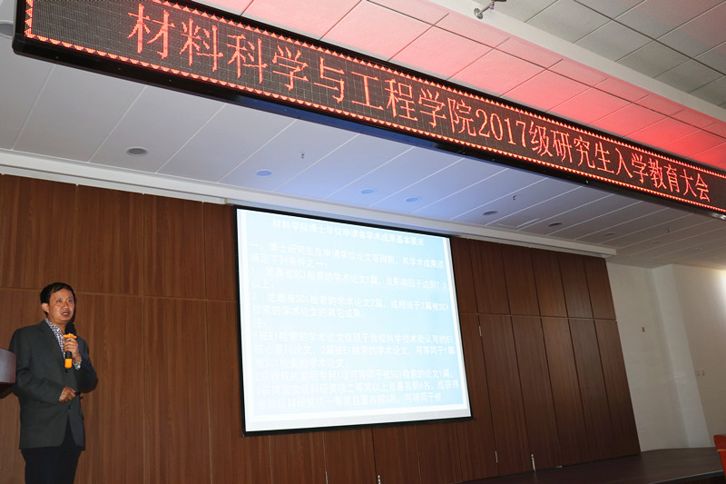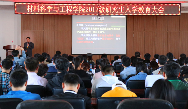 研究生科学道德和学风教育工作实施办法》(校研院字〔2014〕47号)精神及相关要求,加强研究生科学道德和学风教育工作,我院于2017年8月29日上午9:00在逸夫机械材料馆八楼报告厅对全体2017级博士、硕士研究生进行了科学道德与学风教育会议。材料学院党委副书记曲贵文、副院长朱永福、研究生办公室秘书刘徽出席会议。会议由色色啦