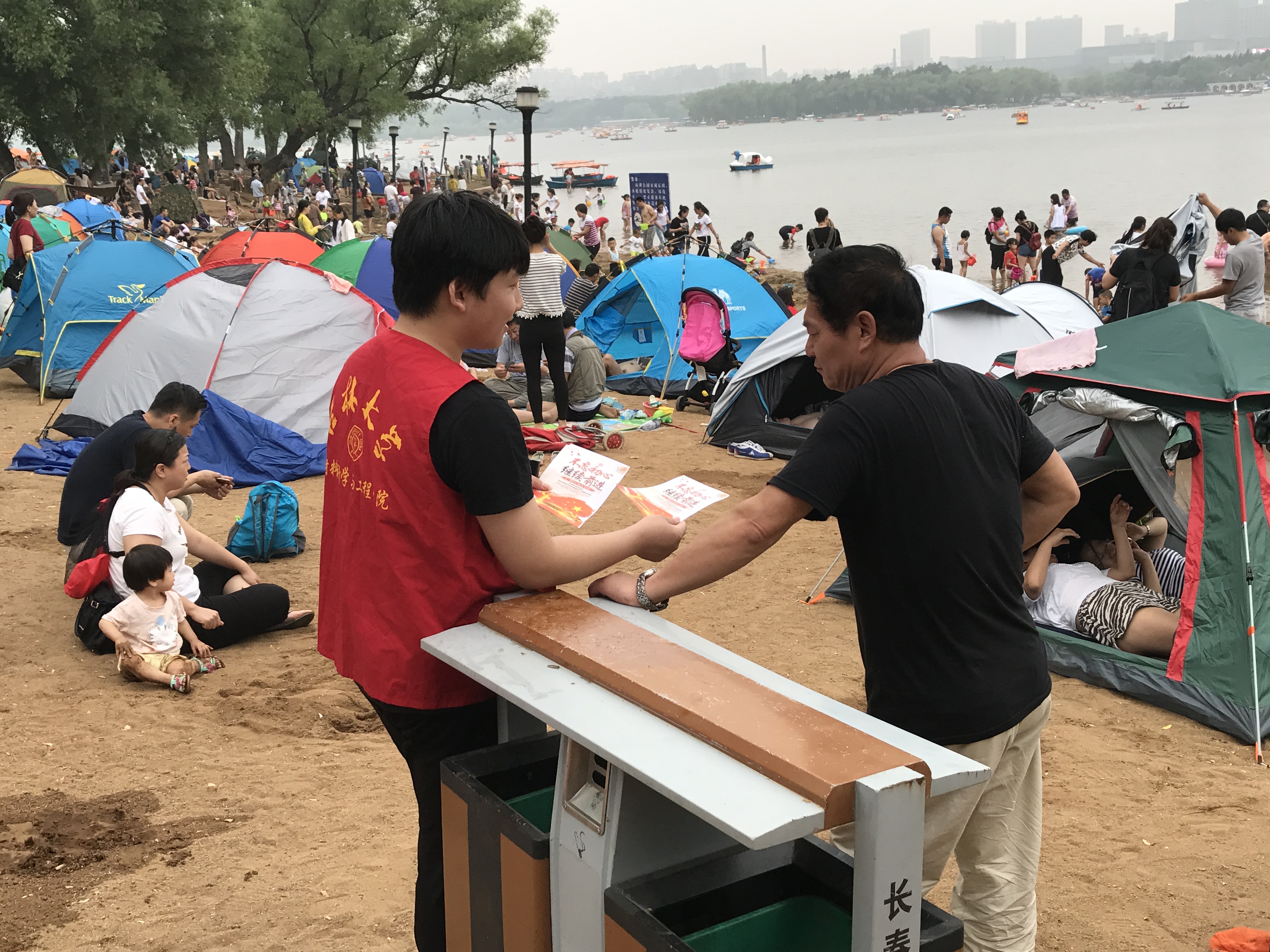 2017年7月11日15:00,假期社会实践的全体志愿者准时在南湖公园集合,吸取上次的经验教训,利用人们游玩时间上的高峰期,志愿者们通过发放宣传单的方式向人们普及国家战略布局以及新的惠民政策的相关知识,传达国家的相关政策与措施,细心解答人们的疑惑,并抽取几位市民进行了相应的询问。取得了良好的效果,这充分体现奉献、友爱、互助、进步的志愿者服务精神。