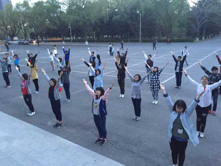 为认真响应落实国家“阳光体育运动”的号召,进一步增强学生们的体质,迎接学校即将举办的广播体操比赛,提高广播体操的动作质量,展现我院学生风采,材料学院组织参赛学生自4月24日起在文化活动中心前训练。