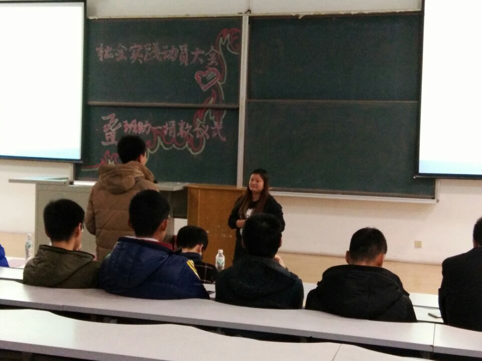 为呼吁学生们积极参加社会实践活动,提高自身社会实践能力,引导其走出校门、接触社会,使理论与实践相结合,为社会贡献自己的力量,材料学院阳光爱心学校于11月25日在逸夫教育大楼B416教室举办社会实践动员大会暨班助一捐款仪式。长春益行事业发展中心项目人员唐玮玮、阳光爱心学校副校长于奥博、张龙华、2015级学生代表及2016级全体同学出席此次大会。