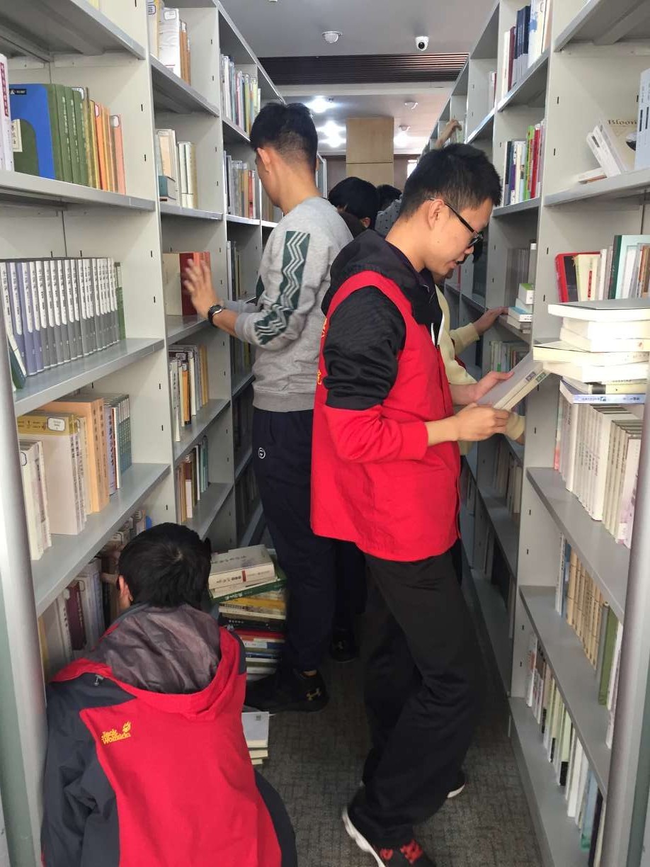 本次活动的主要内容为协助图书馆管理人员对图书馆部分藏书进行整理分类与排序上架。志愿者们首先在管理员的解说下了解主要活动内容与具体操作流程,系统地学习排架知识。随后为更有序高效地完成工作任务,17位志愿者们分为两组。一组负责各个书架书籍的排序整理,一组负责将错书进行分类、归位。在明确各自任务之后,志愿工作就有条不紊地开展了。在保证图书馆安静,不打扰读者阅读的前提下,两组志愿者互相沟通、互相帮助,充分展现出团队合作精神和文明礼貌的优良风貌,达到了良好的工作效果并得到管理员的一致好评。最后,志愿者们对工作作出总结,认为志愿活动不仅仅是一种纯粹的劳动,更是一个感知学习氛围,接触知识与书籍的机会。
