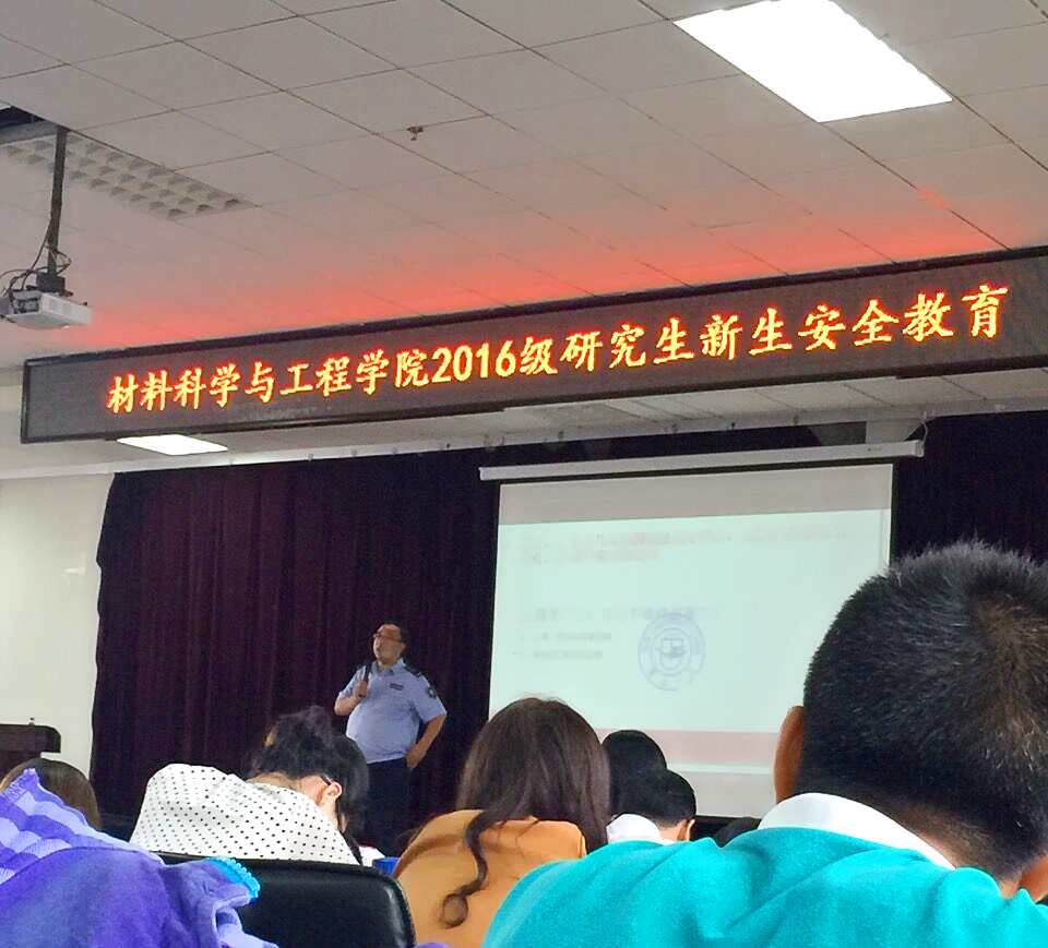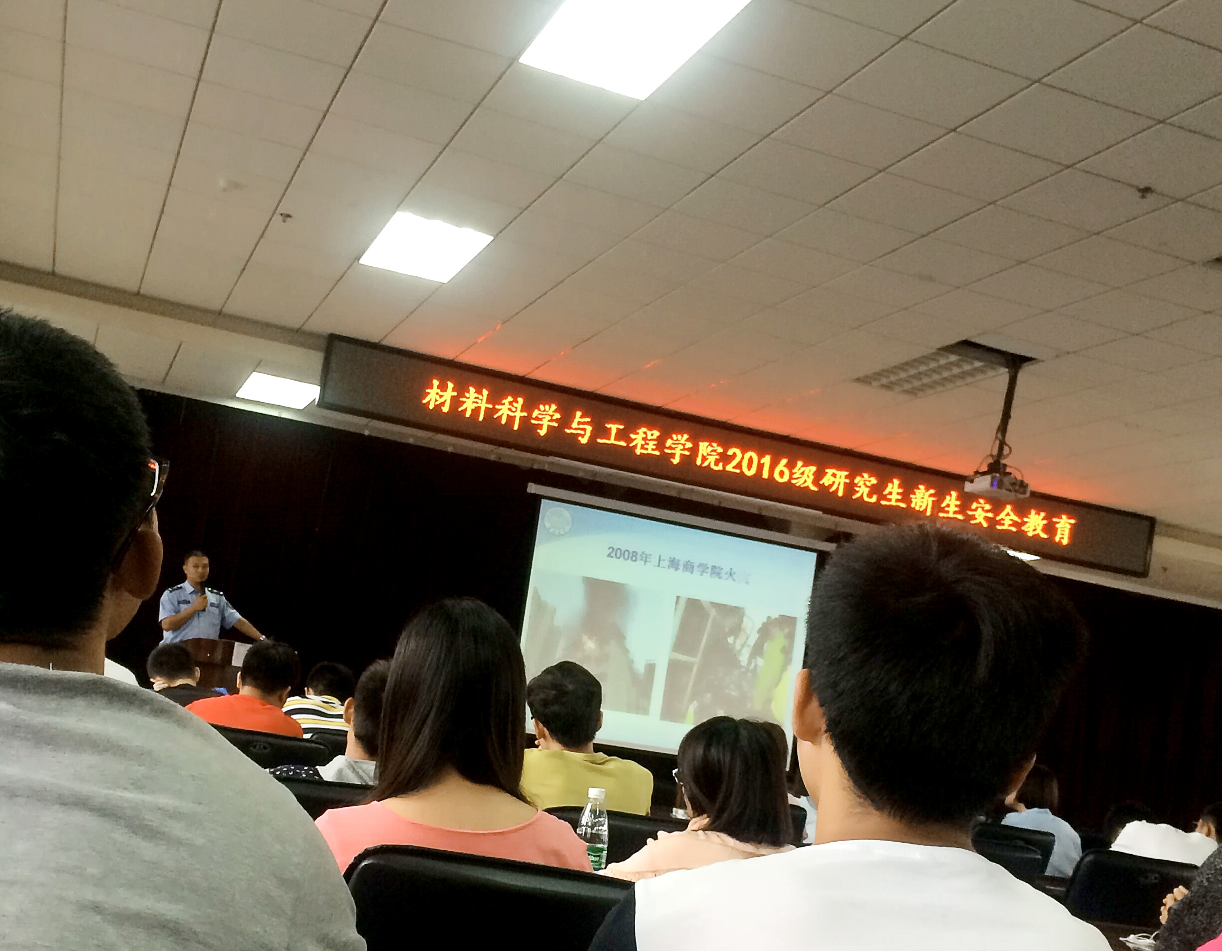 于2016年8月25日上午8:30在逸夫机械材料馆八楼报告厅开展了2016级新生安全教育的专题讲座,本次讲座由东区综合办治安科于珺科长和东区保卫办公室消防科韩旭老师对消防安全、综合治安两个较为突出的问题进行细致讲解。