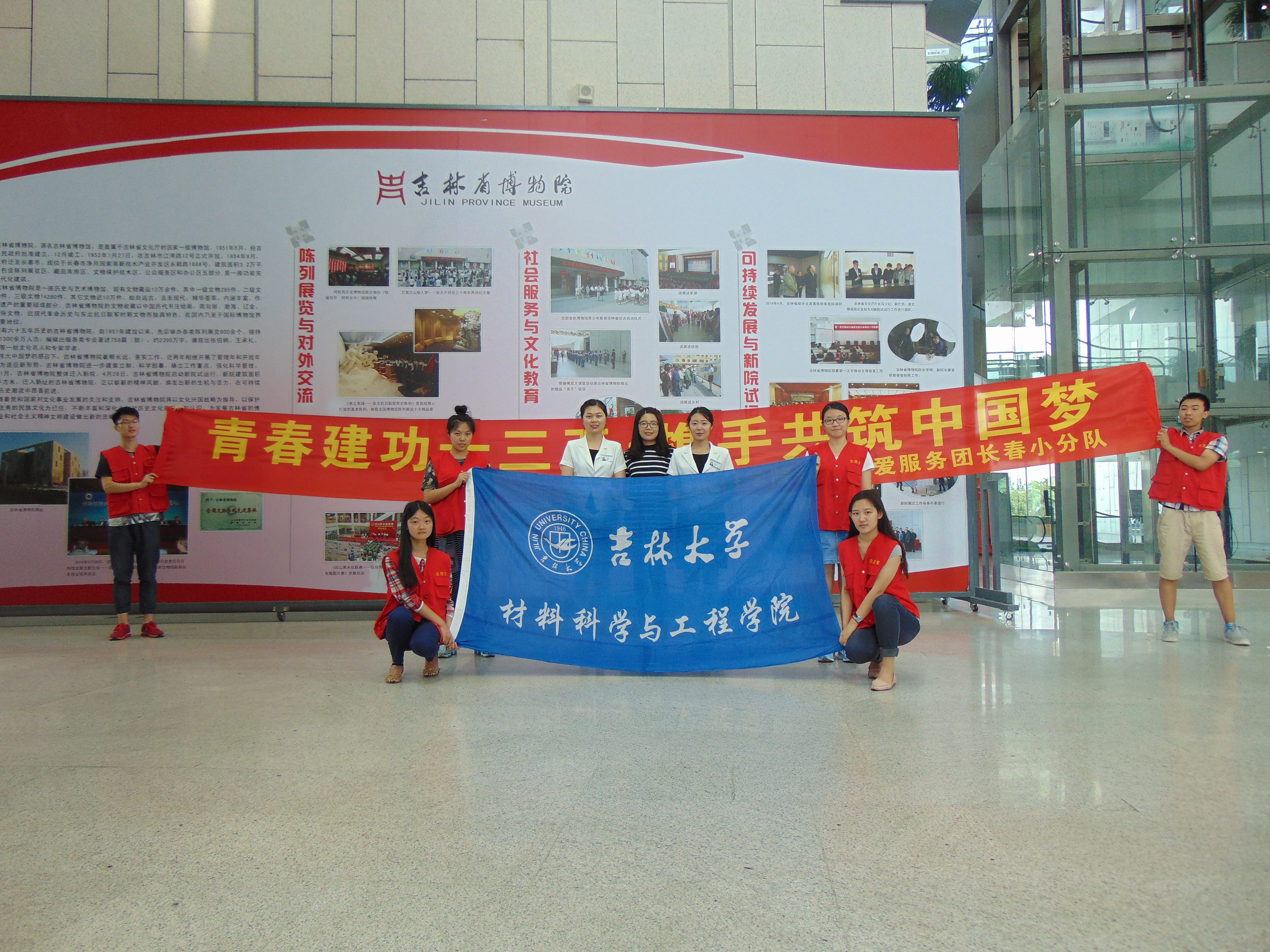 为了引领广大青年学生践行习近平总书记系列重要讲话精神,加深对社会主义核心价值观的理解,积极响应校团委”三下乡”政策,锻炼材料学子的社会实践能力,增强学生的爱心,材料学院于7月17日开展了以“青春建功十三五•携手共筑中国梦”为主题的三下乡社会实践活动,我院关爱教育服务团走进省博,进行了义务指引志愿服务活动。