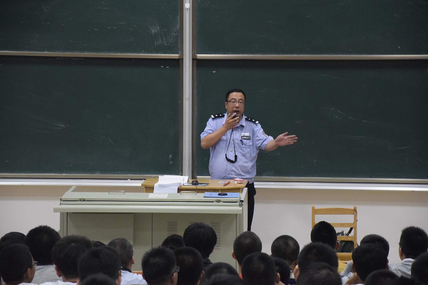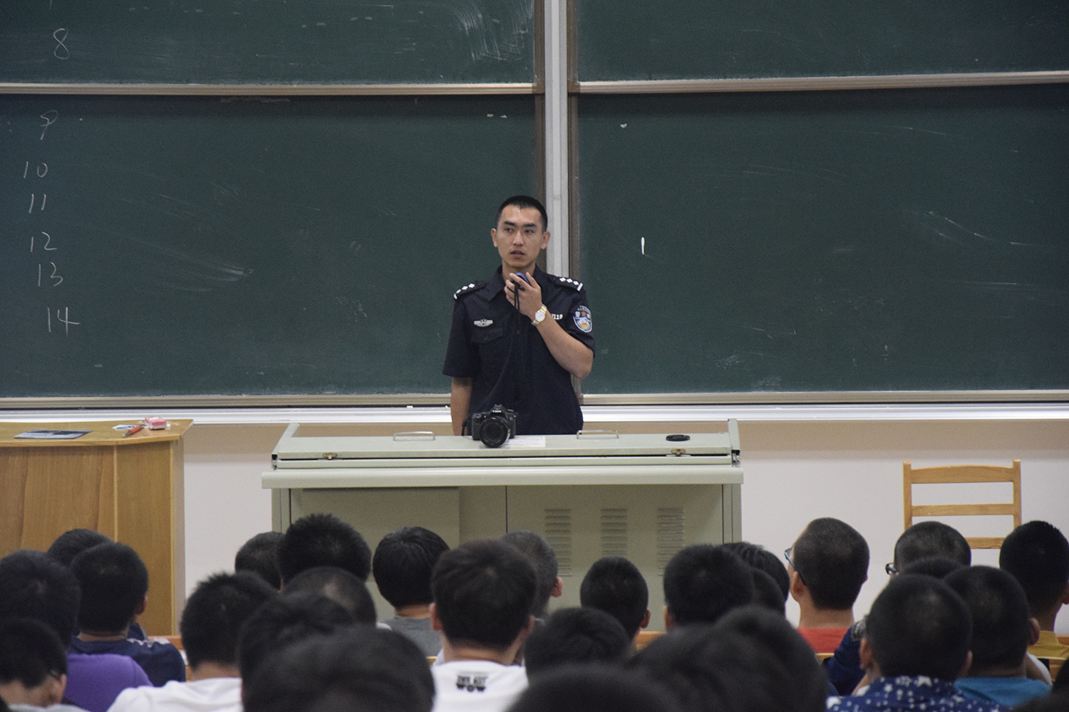 首先,于老师向同学们介绍了有关南岭校区安全问题的基本情况。他凭借自己多年经验向在场学生介绍了校园内可能发生的安全问题,同时详细分析了出现这些安全问题的原因,并且给大家提出了大学生活中有关安全的注意事项和解决问题的具体办法。同时于老师向同学们介绍了校园多发案件的类型和遇到自身权利被侵害时的应对措施,并再一次提醒同学们出行时一定要注意人身财产安全。在车流量较大的地方要随时保持警惕。不要轻信陌生人,时刻提防网络、电话等诈骗手段,不贪小便宜,杜绝晚归和夜不归宿现象。于老师指出,想拥有一个和谐融洽的大学生活氛围很重要的一环就是保持良好的同学关系,积极参加学院活动,团结友爱、互相帮助。