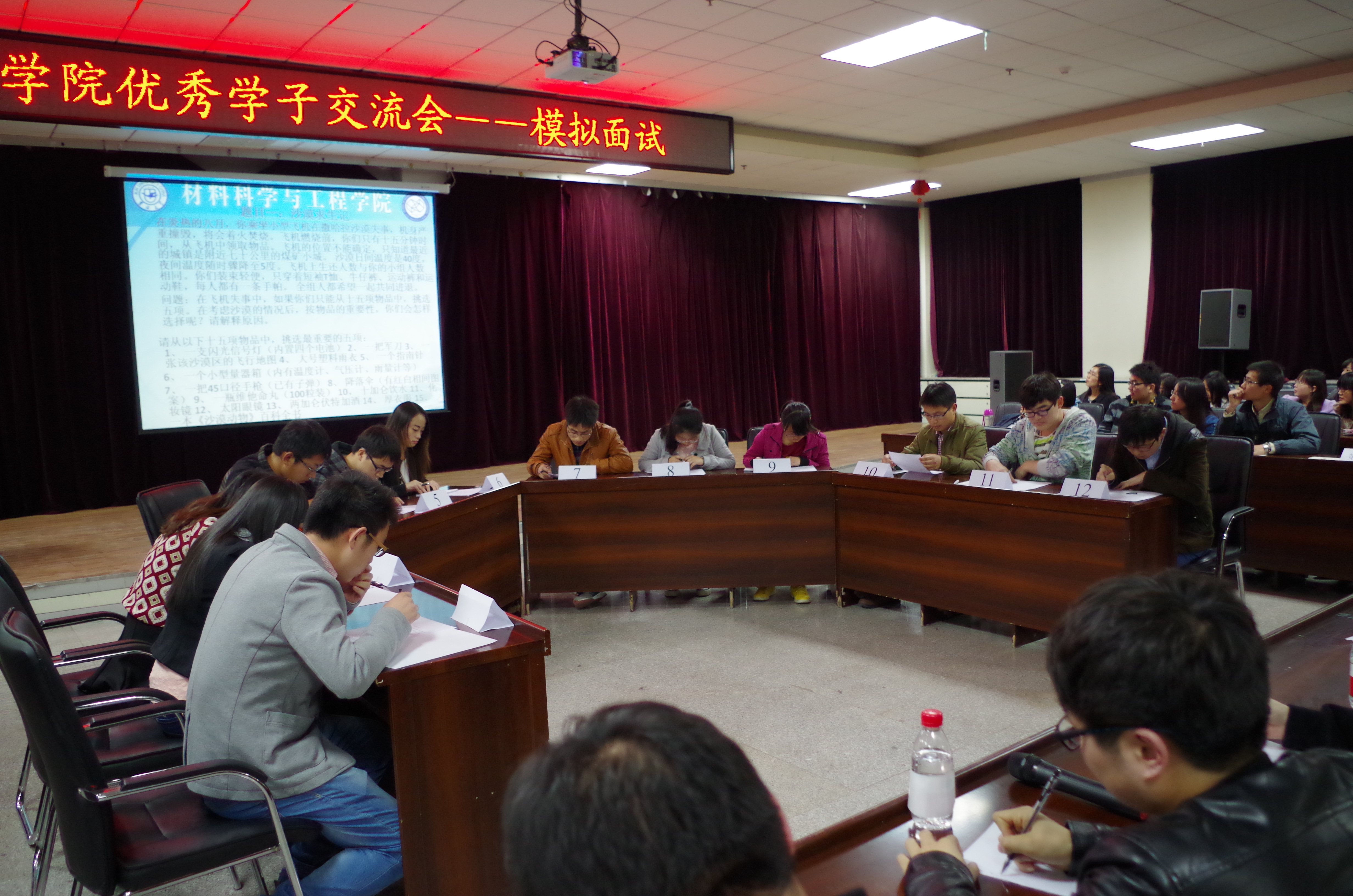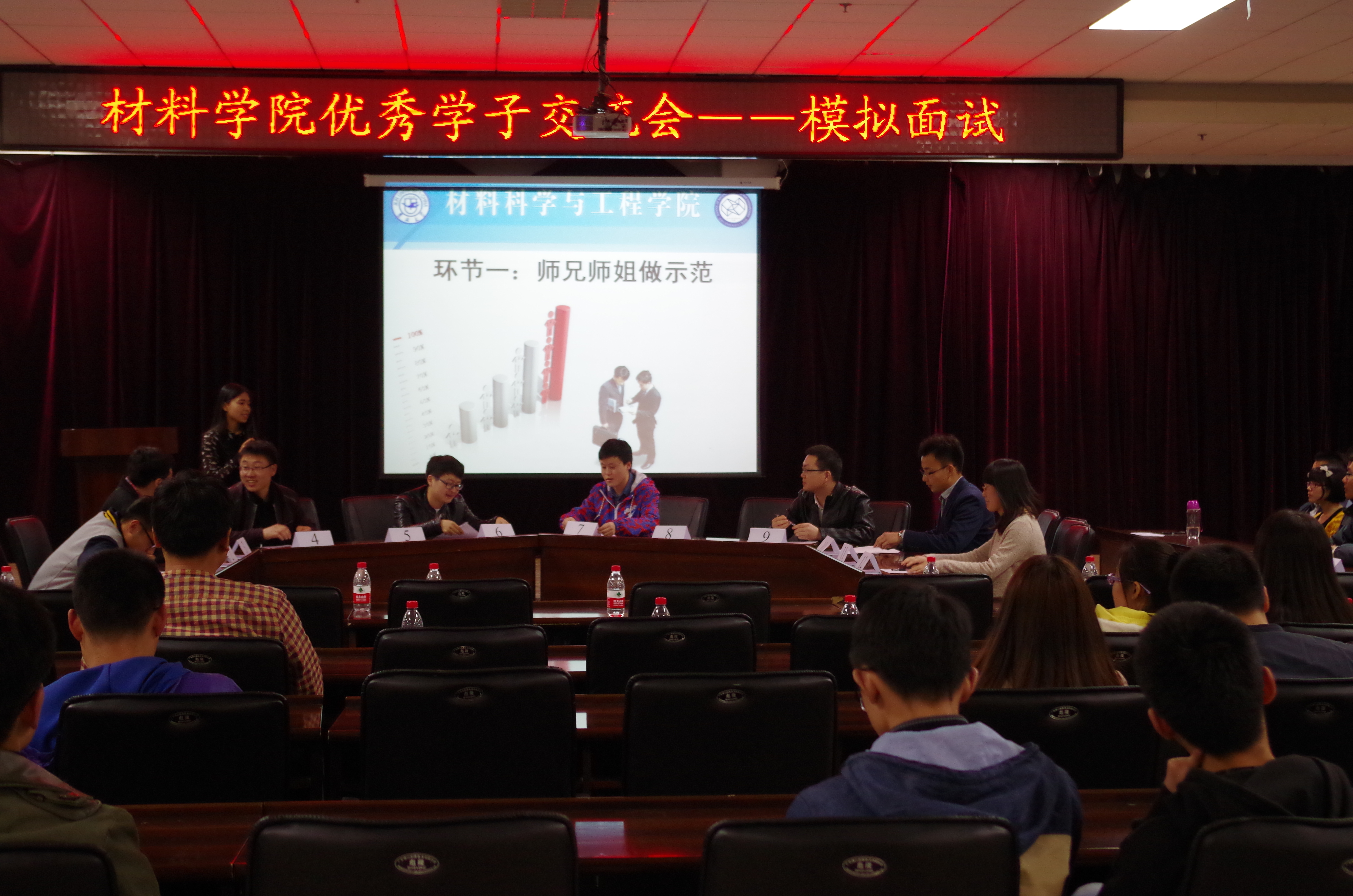 研究生学团委学术实践部于4月22日晚6:30在机械材料馆八楼成功举办了“材料学院优秀学子交流会--模拟面试”活动。