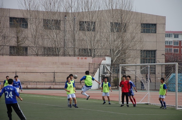 决赛一开始,两队都踢得比较谨慎,无论是农学部足球队的中后场长传进攻,还是材料学院足球队一贯的地面进攻都显得带有试探性的目的。比赛进行到第十分钟后,材料学院足球队率先进入比赛的状态,并且渐渐控制了比赛的局面,场面形式完全占优,压着对手打,攻势一波接着一波,在此后二十多分钟的时间里,皮球一直在农学部的后场传动,比赛进行到20分钟左右,材料的进攻终于取得了成效,28号陈宝森接队友的直传,小角度打门,材料1:0领先。领先后,材料稍显放松,农学部在上半场比赛结束前利用反击将比分扳平。
