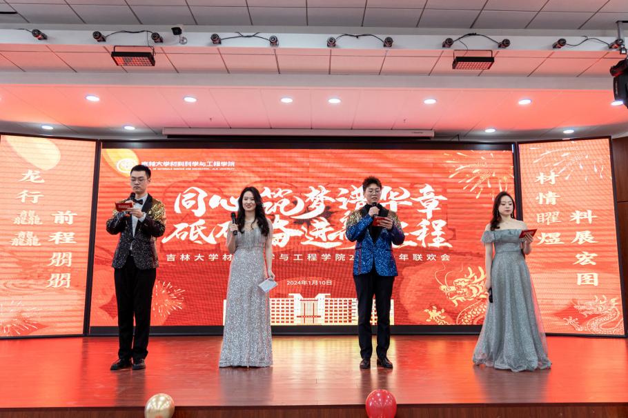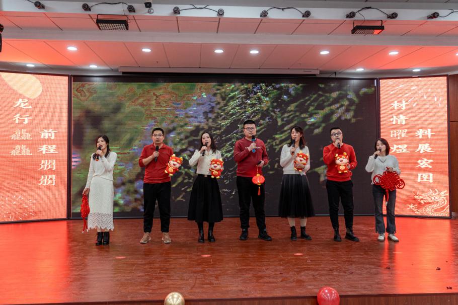 随后,材料学院2024年新春联欢会在流光溢彩、光影四射的舞台中拉开了序幕。学院的老师和同学们同台献艺,相声演绎、歌舞表演、乐器武术、诗歌朗诵等形式交融糅合,整场晚会精彩纷呈、高潮迭起,真挚地表达了材料人的梦想和追求、情怀与担当,为全场教职工带来了一场慷慨激昂、大气磅礴的视听盛宴。欢声笑语中,除了精彩纷呈的节目表演,还有激动人心的抽奖环节,趣味热闹的游戏互动,现场欢腾不已,热闹纷呈。此起彼伏的掌声与欢呼声在会场内交相辉映,将联欢会的气氛推向最高潮,给每位教职工都留下了难忘的回忆!