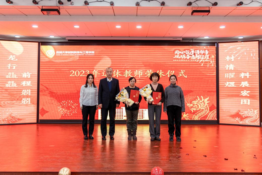 本次联欢会还邀请了学院荣休教职工回家,刘远书记为到场的退休教师颁发荣休证书,感谢他们为学院教学、科研等各方面发展做出的努力和贡献,祝福他们退休生活健康快乐,精彩充实,并希望他们继续关心、支持学院的后续发展。新入职教师代表为退休教师献花。