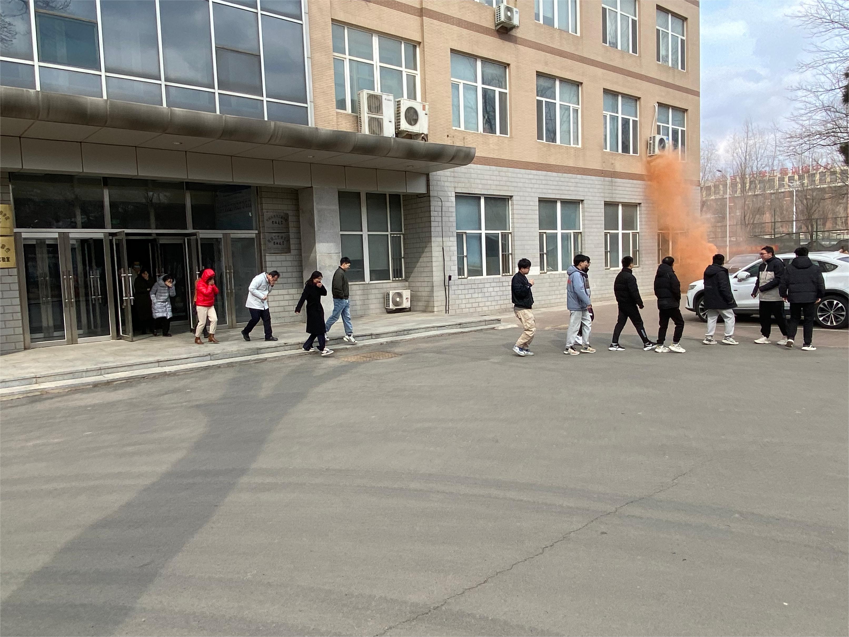 为确保此次演练顺利进行,学院召开消防逃生安全疏散演练部署会议,制定详细、周密的演练方案,对疏散路线、撤离位置、注意事项等都作了明确要求。演练开始前,保卫办王中刚老师对演练方案进行了详细解读,并对相关注意事项进行了特别强调。火灾警报声响起后,参演师生按照预定的疏散路线快速有序撤离;王中刚老师现场指导、演示正确使用灭火器材,扑灭初起明火。整个演练过程井然有序,达到了预期效果。
