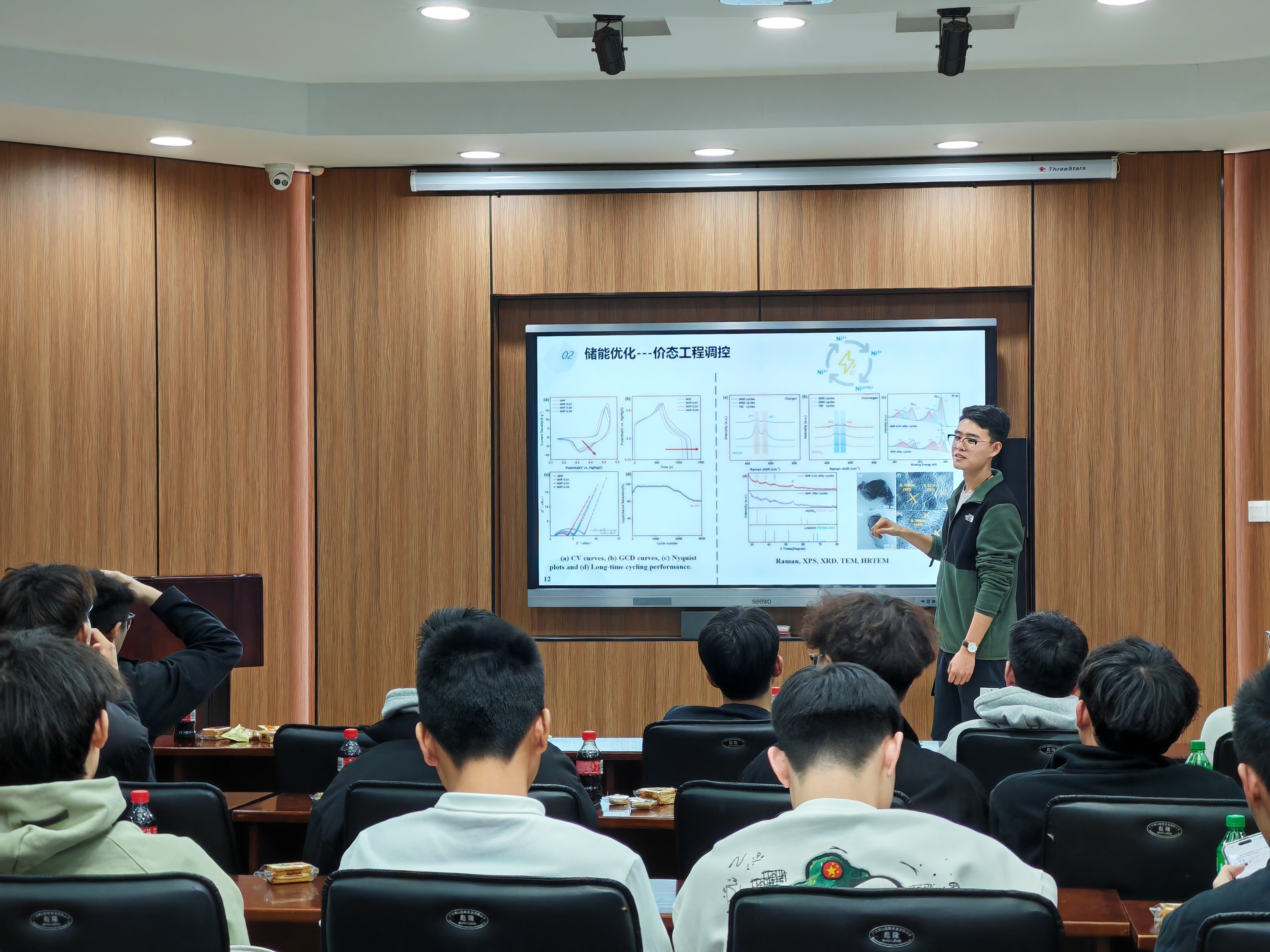 前卫南区唐敖庆楼D429举办。本期学术沙龙南岭会场邀请了2022级材料加工工程博士钟诗江进行学术分享,主持人为沈平老师;南区会场邀请了2022级材料与化工专业硕士赵禹曈进行学术分享,主持人为于陕升老师。