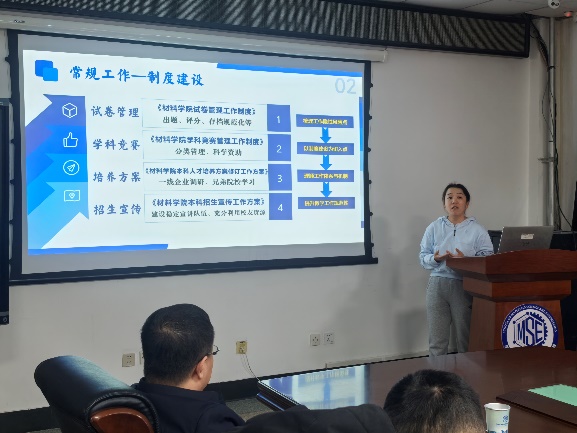 会上,教务办公室主任王微、党委办公室主任邹丽云、实验室管理负责人于雅琳、人事人才工作负责人张嘉芮、研究生办公室主任刘徽、双一流建设办公室王铎、学生办公室主任严冬、科研办公室主任唐海亨等分管工作负责人,分别围绕全面提升本科教育教学质量,扎实开展常规工作,稳步推动增量工作;聚焦基层党建重点任务清单,全面对标,狠抓工作落实,精心布局样板党支部打造;系统开展实验室安全管理工作,不断完善实验室安全管理体系;不断提高服务精准度和专业度,持续优化升级人才“引育用留”全链条,助力稳固人才梯队建设;全方位加强研究生思政管理,大力推进研究生教育综合改革,持续提升研究生人才培养质量;深入挖掘学科优势,加强数据管理;挖掘学生特点、展现专业优势、强化党建引领、树立特色品牌;搭建校企对接平台,加速科研成果落地等重点工作展开了具体详实的汇报,张立军院长结合汇报内容,逐一分析点评,实事求是地剖析问题,提出努力方向和改进措施,鼓励各科室要坚持问题导向、目标导向、结果导向,为学院实现全方位高质量跨越式发展共享力量。