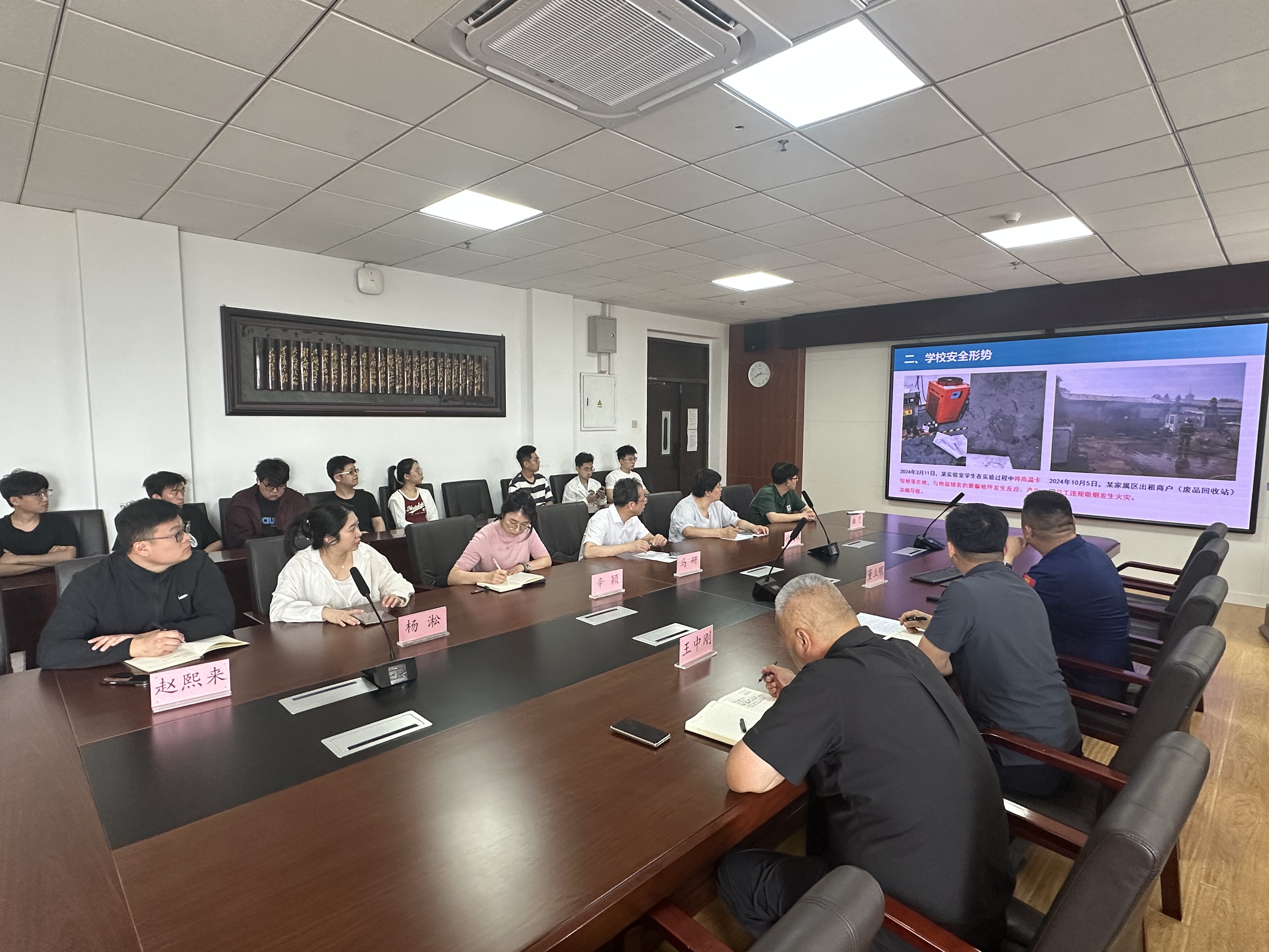 《关于开展2025年“安全生产月”和“白山松水安全行”活动的通知》精神,进一步提升师生员工的安全意识和应急处置能力,6月18日上午,保卫处消防科科长董立明为师生代表作了一场以“强化安全意识,提升应急能力”为主题的安全教育培训。保卫处东区保卫办公室主任夏立峰、正科级秘书王中刚应邀出席。材料学院行政副院长辛颖及师生代表、机械学院行政副院长马研及师生代表参加了本次活动。
