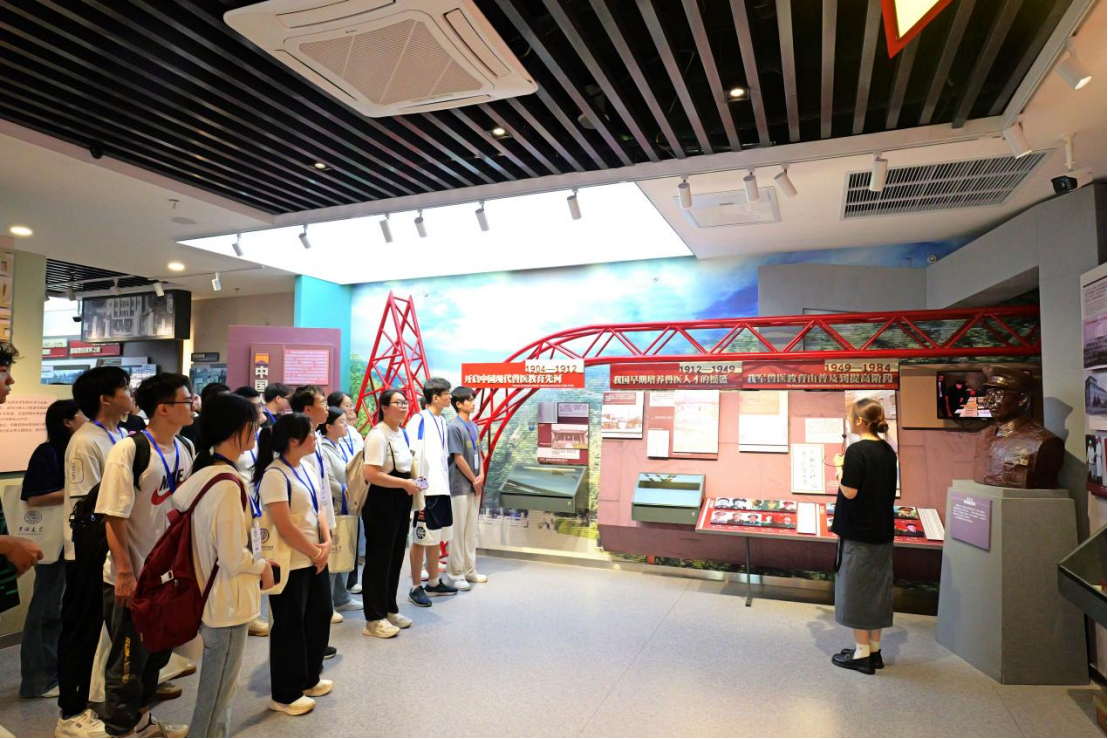 下午12点30分,参营优秀学子在志愿者的带领下从南岭校区西门出发,走南湖大桥,路过南湖校区,前往前卫南区。路过五月花广场,日新楼等前卫南区相关景点,参观校史馆,然后途径新民校区,前往朝阳校区,最后16:30前到达朝阳校区,参观地质宫并合影留念。
