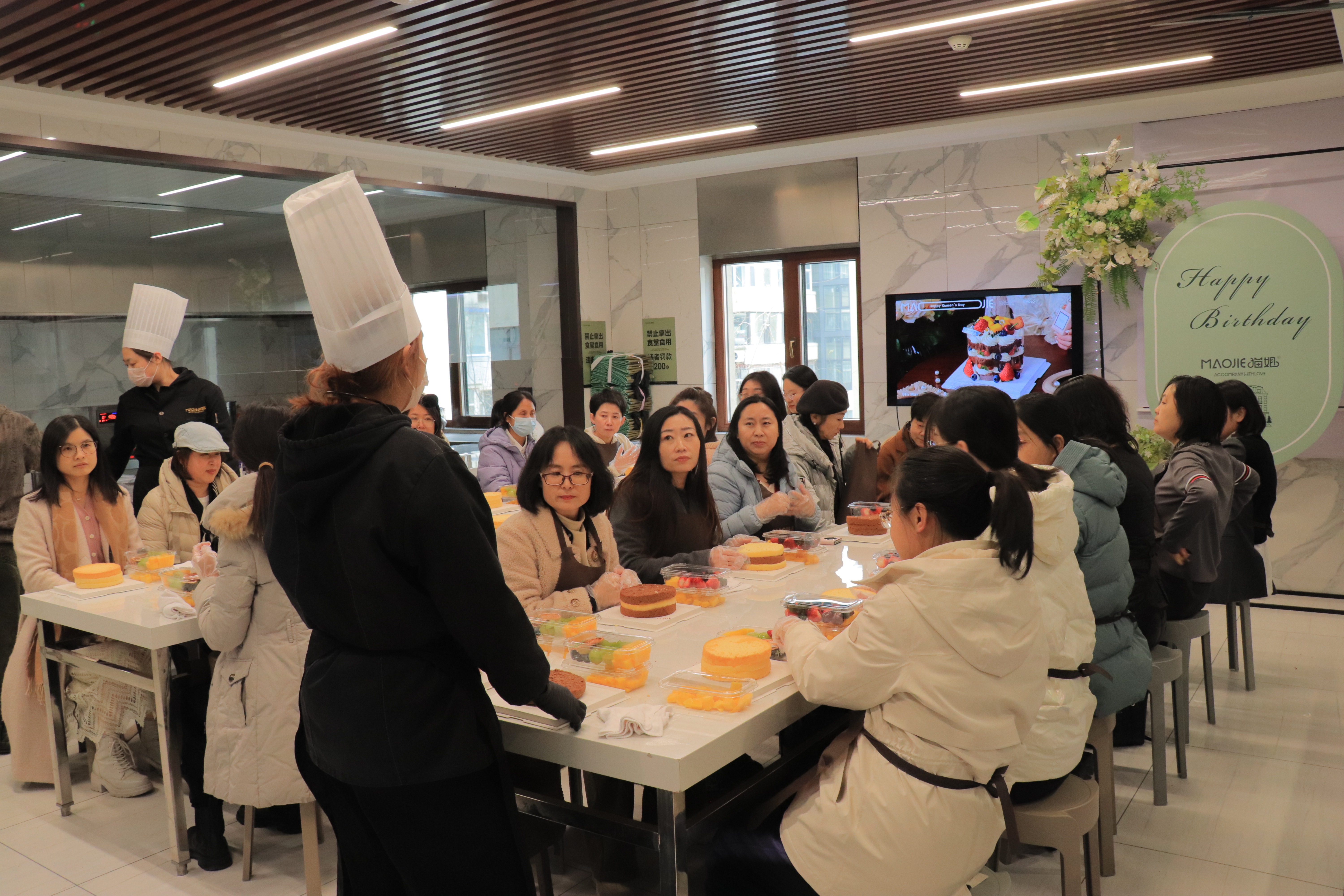 活动现场气氛温馨,欢声笑语不断。女教职工们化身巧手匠人,在专业老师的指导下,亲手涂抹奶油、点缀新鲜水果,尽情发挥创意。大家互相协作,交流裱花心得,分享摆放技巧,在轻松愉快的氛围中,不仅体验了从无到有的创造乐趣,更感受到了团队合作的默契与温暖。