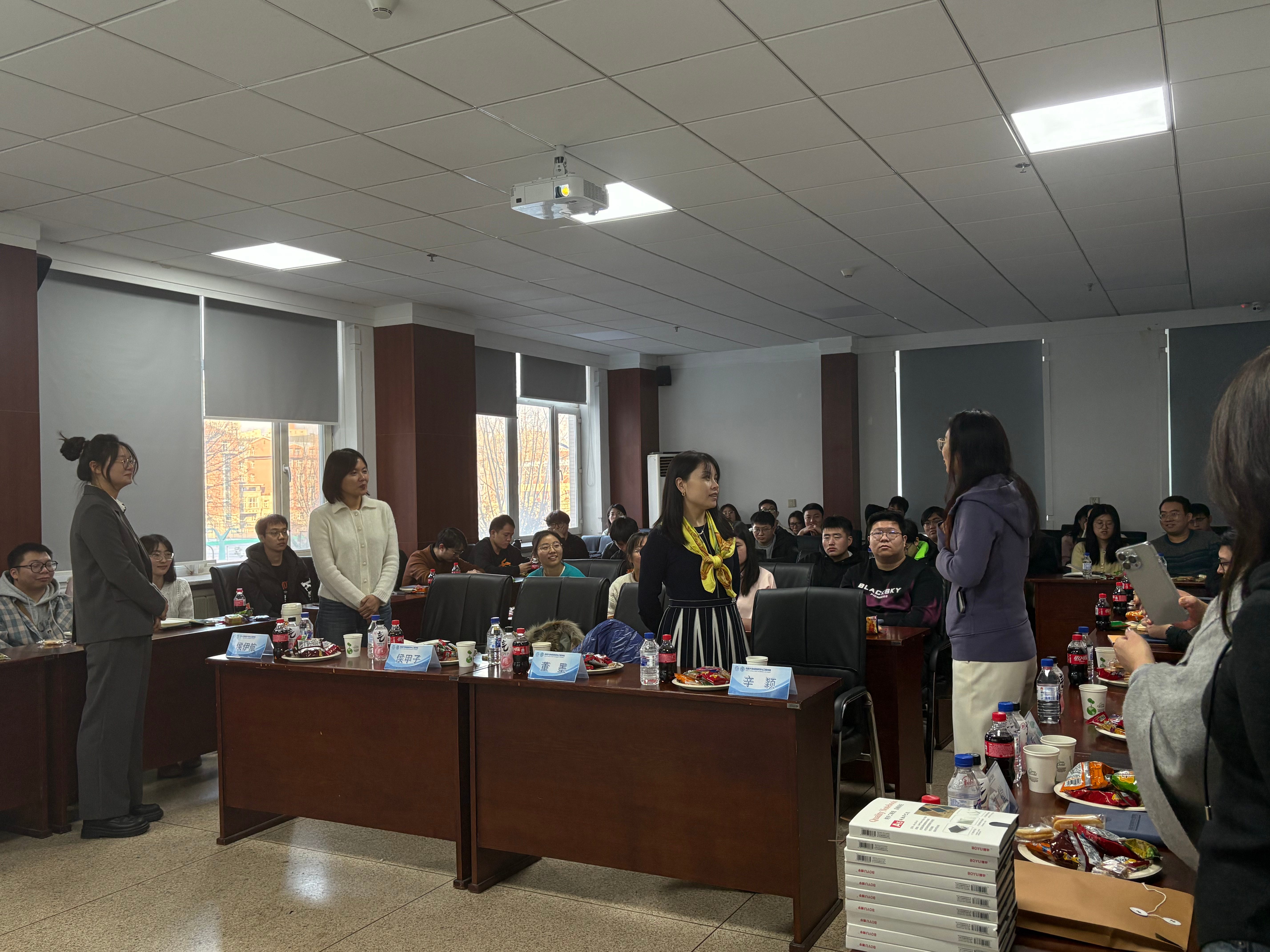 本次学术沙龙还邀请到材料学院辛颖副院长与杨淞老师参加活动。辛颖副院长从学院人才培养、学术氛围的建设出发,肯定了活动的举办意义,同时结合实际工作经验,就活动组织形式、交流实效提升等方面提出建议。此外杨淞老师还给现场积极参与交流互动的同学们颁发精美的小礼品,她们的参与不仅为活动增添了权威性与指导性,更让师生们感受到学院对学术交流的重视与支持。在这一期的学术沙龙当中,侯伊航同学带来了详实且极具启发的科研分享,侯甲子老师则进行了专业到位的点评,还结合研究方向给出了延伸性的指导建议,同学们在拓宽学术视野的同时,也在科研思路上得到了切实的收获。