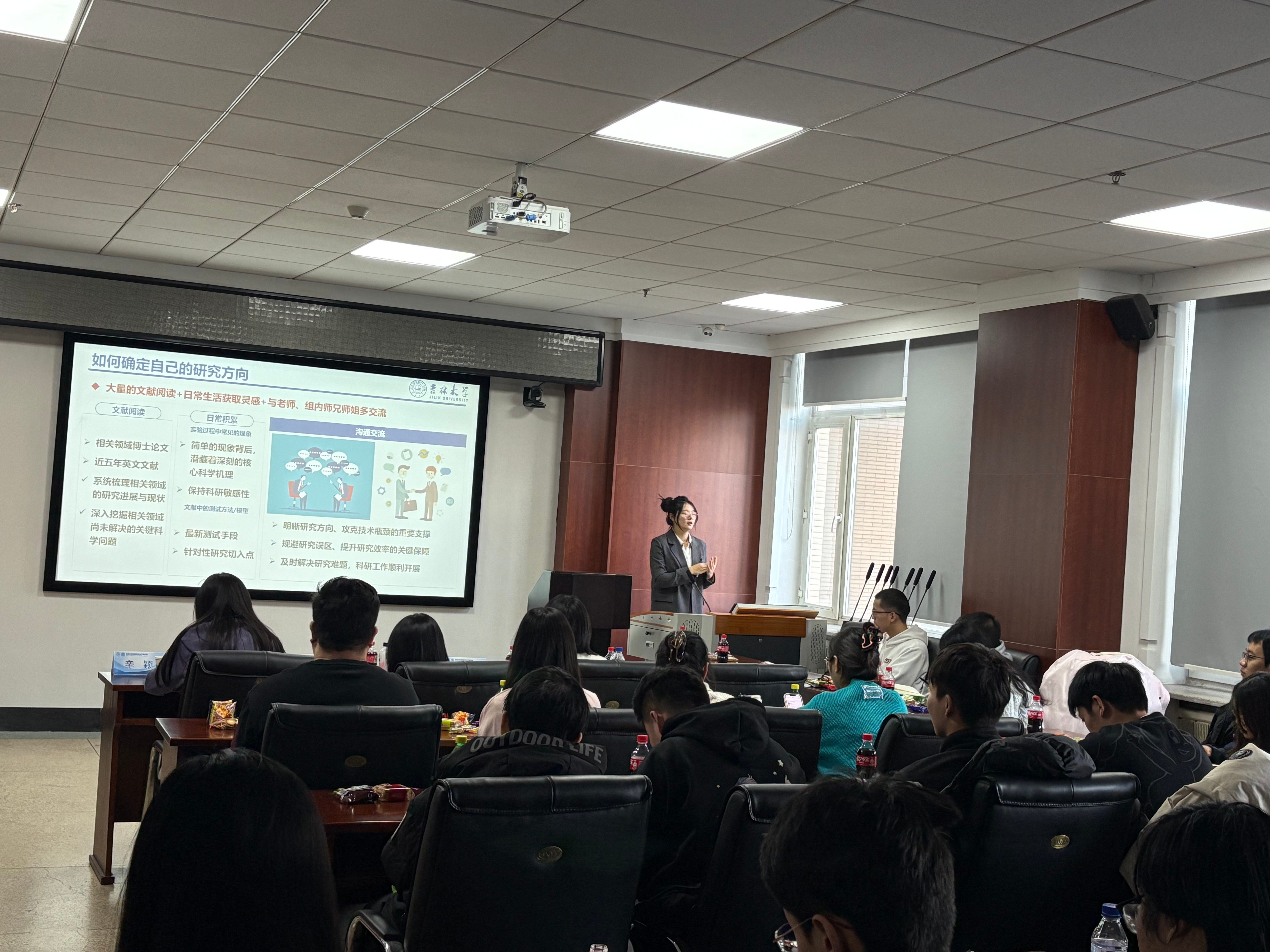 董墨老师(国际交流科科长)主要负责落地创新型人才国际合作培养项目,组织博士生国际学术论坛、研究生学科交叉融合系列活动。在本次学术沙龙的交流中,董墨老师主要围绕国家公派留学的相关内容和在场研究生沟通,为大家解答了公派留学的申报条件、材料准备细节、申请流程这些实际问题,也顺带介绍了可以衔接的相关交流项目与活动的参与方式,既给同学们理清了申请公派留学的实用指引,也让大家更清楚学校的国际交流支持资源,能帮着同学们更好地规划学业,抓住拓展学术视野的机会。