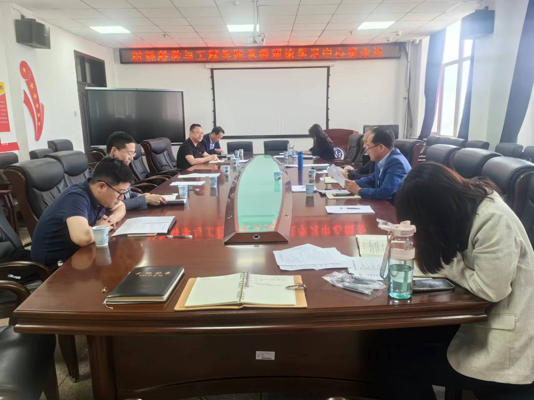 在材料馆410会议室召开党委理论学习中心组会议,学院党政领导班子成员、院长助理参加会议,会议由学院党委书记刘远主持。