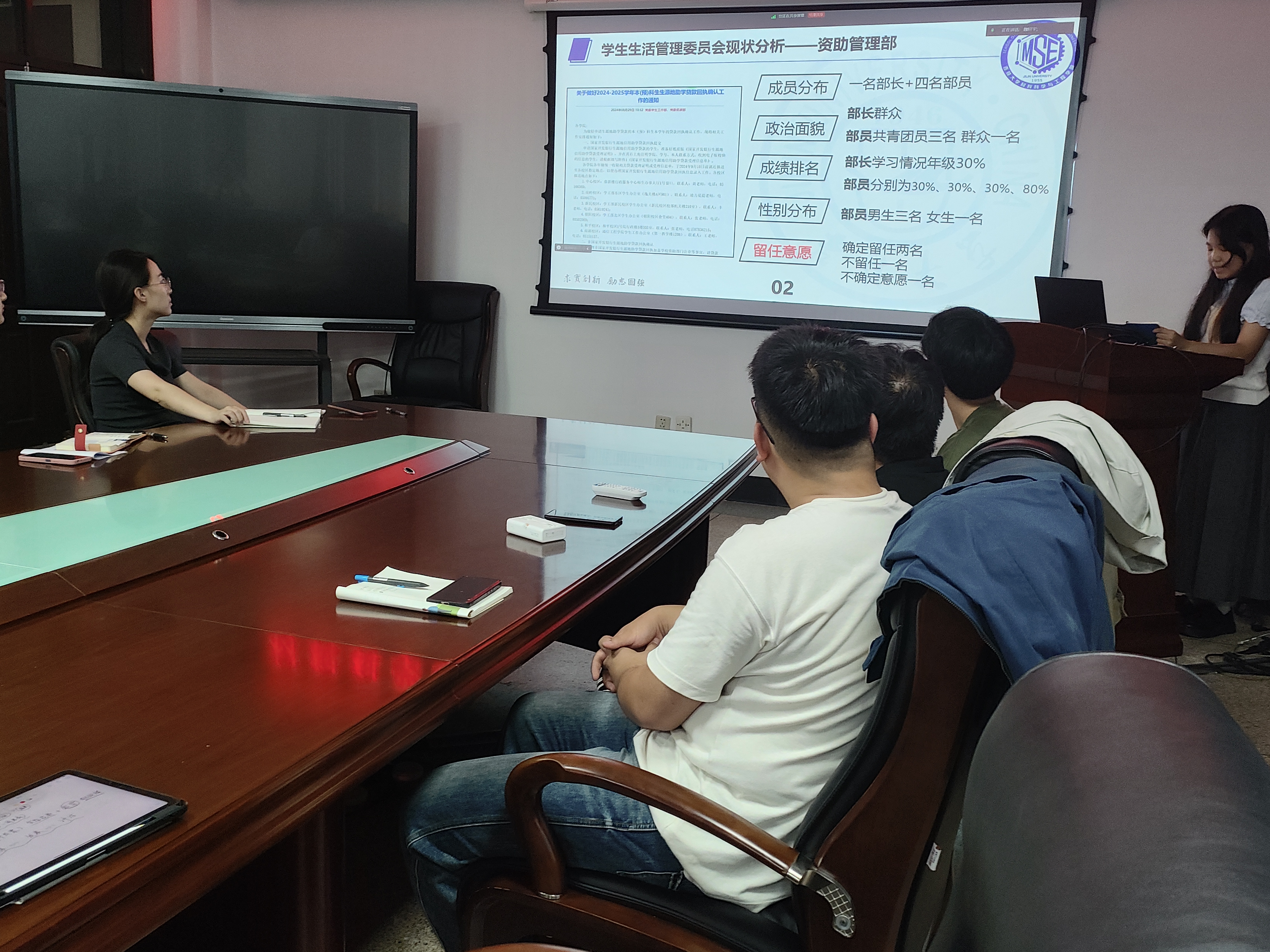 会议开始后,各学团负责人就本年度学团工作规划,结合当前学院具体安排,依次汇报了各部门在新学期日常性工作和创新型工作上的计划、部门培训计划、并分析了上一学年成员学习成绩。王晗老师强调各组织部门之间要加强沟通、密切配合,在高效完成日常工作的同时勇于创新、敢于开拓;除此之外还要加强组织建设,提高成员执行力和工作对接效率,在新的学年多思考、多总结;最后王晗老师还对学团未来发展提出了新希望和新期待。