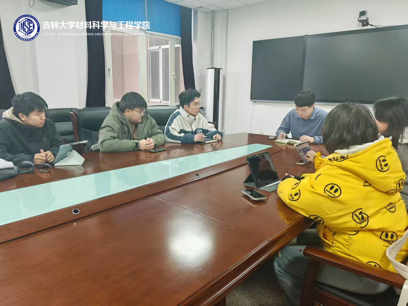 在逸夫机械材料馆410召开2025春季学期团学工作例会。学院2024级辅导员唐运通老师和学生生活管理委员会主席团及各部门负责人参加会议。