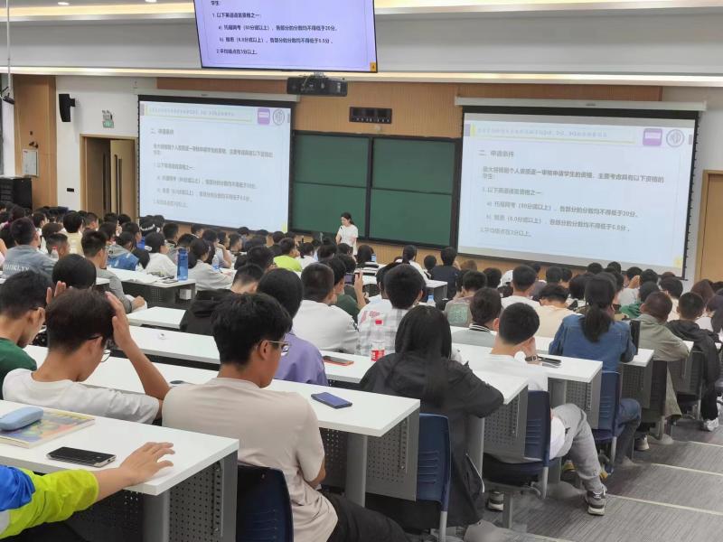 杨淞老师首先介绍了学院外事工作概况,并对近几年本科生参与国际交流和出国深造数据进行基本的梳理和分析,随后详细解读了“英国曼彻斯特大学本科生双学位2+2、2+3、3+2联合培养项目”、“新加坡国立大学本科生 “3+1+1”、“瑞典林雪平大学本科生3+1+1联合培养项目”、“德国亚琛工业大学4+2项目”等目前学院的国际交流合作项目,并对报名条件、选拔资格、费用、毕业去向等进行详细介绍,并细致耐心的回答了同学们提出的相关问题。