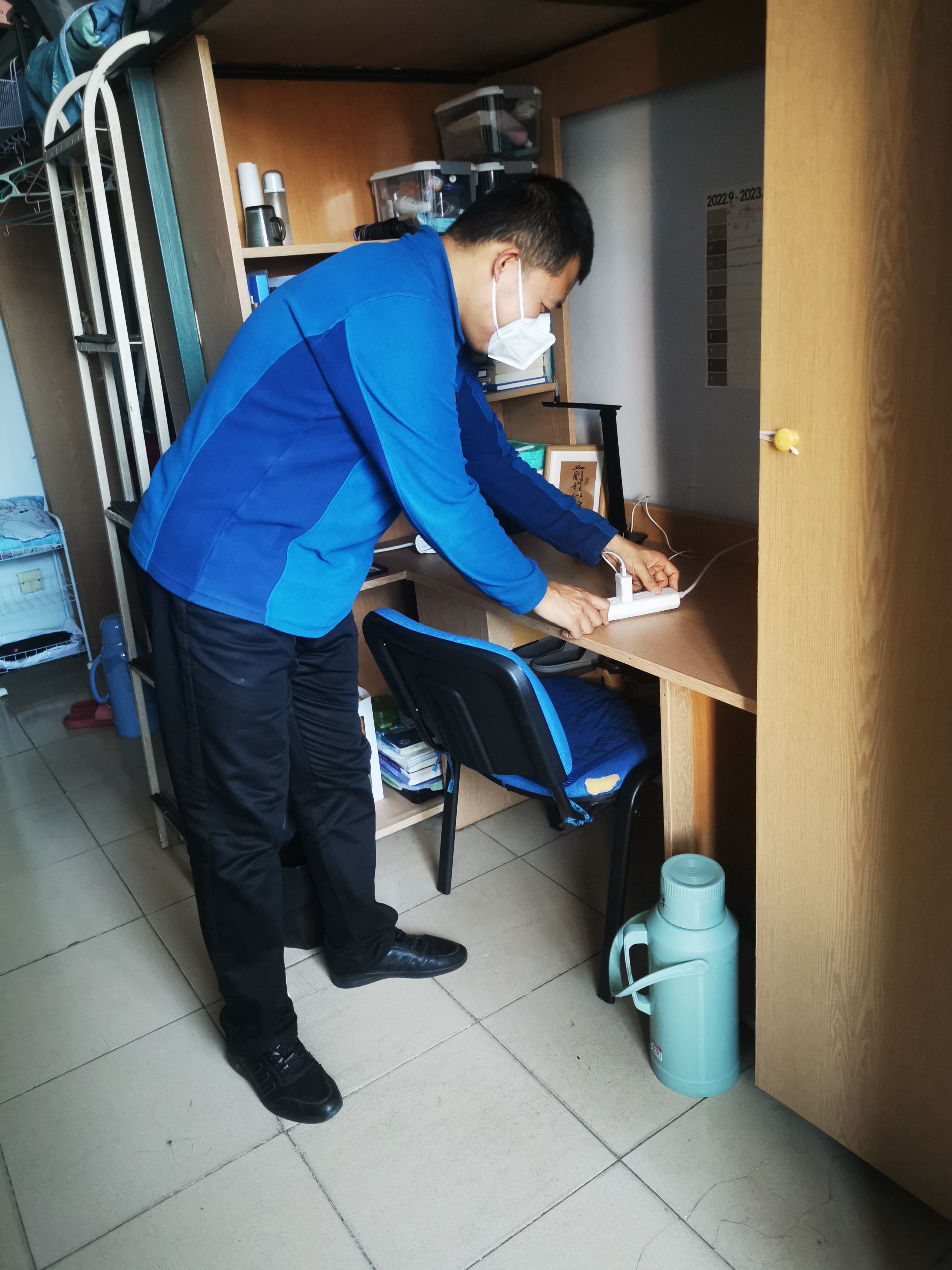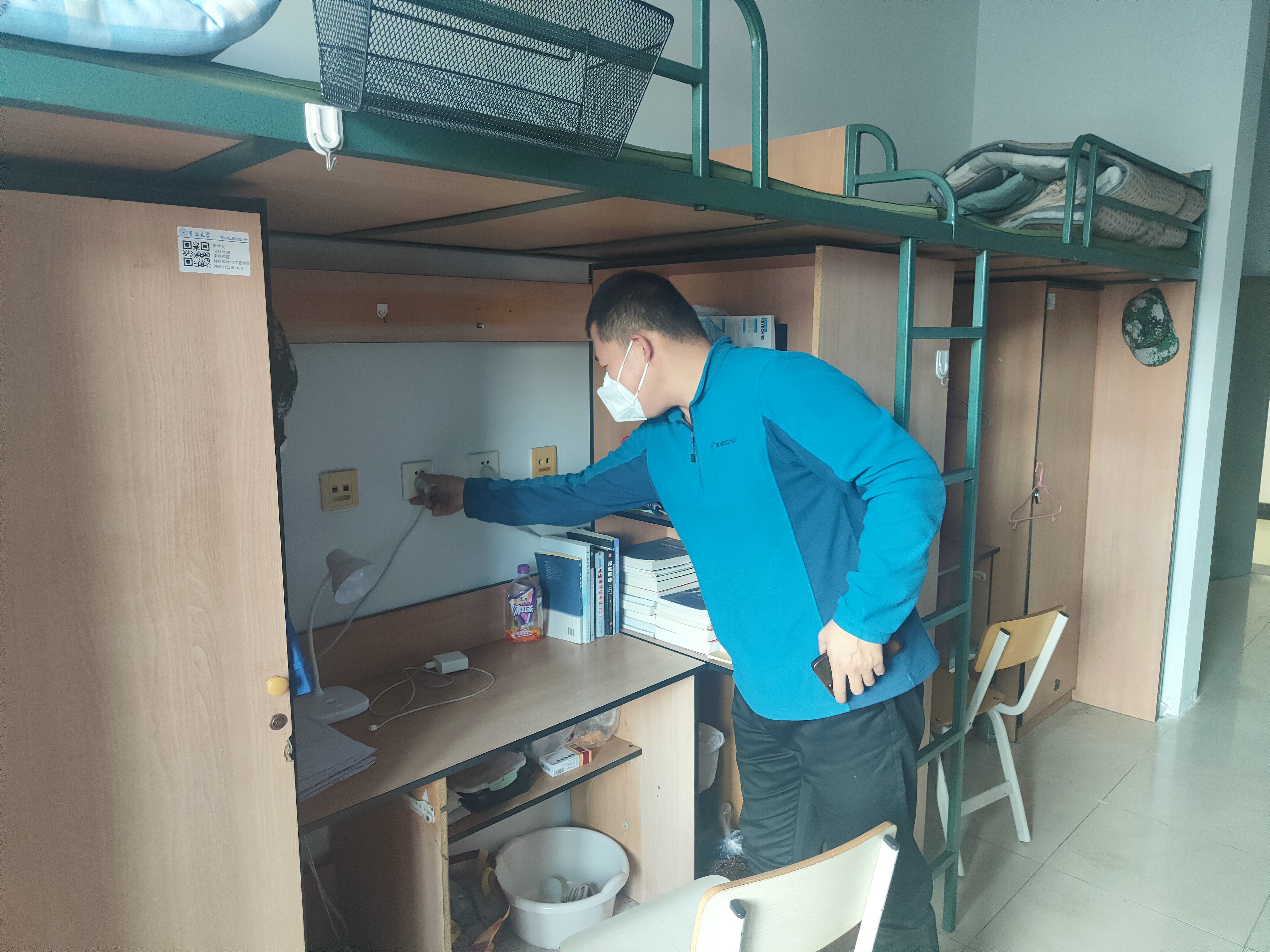 工程学院材料类2021级本科生辅导员严冬分别前往11公寓、12公寓开展本学期学生离校后寝室安全卫生检查工作,并与部分在校同学交流在校期间的思想、生活及学习情况,部分在校同学参与本次寝室走访工作。