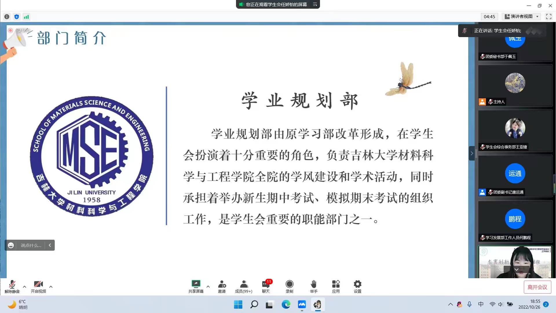 基层团委、学生会、阳光爱心学校、新媒体中心、学生生活管理会联合举办。学院团委负责人、2022级兼2020级辅导员王晗,材料物理专业辅导员张晗禹,各学团组织主席团成员和部门负责人参加本次宣讲会。