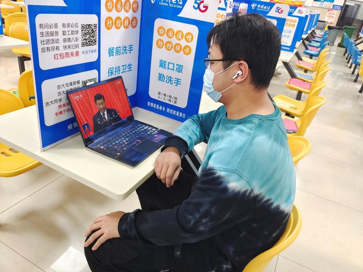 同学们跟着总书记的报告回顾了上一个五年发展阶段党的工作和新时代十年的伟大变革,又在政治、思想、民生、军事、外交等方面领会了党中央擘画的发展蓝图。总书记在报告中说到:“青年强,则国家强。当代中国青年生逢其时,施展才干的舞台无比广阔,实现梦想的前景无比光明。”这让同学们备受鼓舞,要将报告精神融入到自己的学习生活中。立志以时代为己任、以国家宏图为目标,刻苦学习,扎实工作,以一往无前的姿态全面发展,成为社会主义接班人和建设者,谱写新时代中国特色社会主义更加绚丽的华章。
