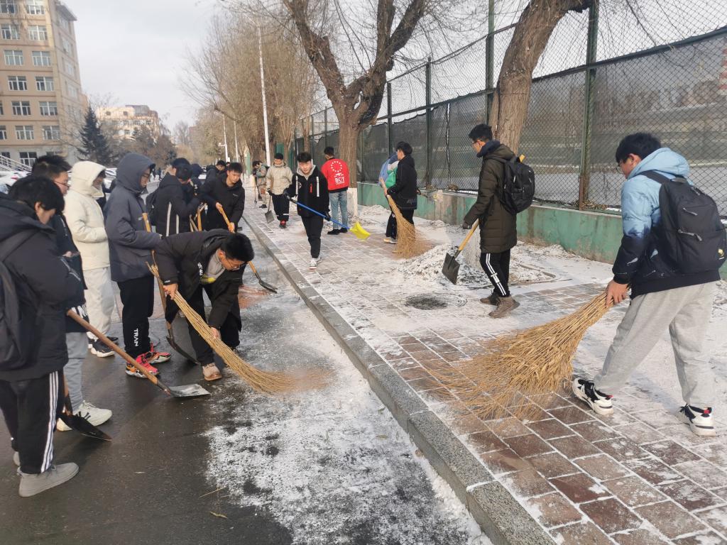 此次清雪除冰工作,不仅使校内师生的出行更加便利、创造良好校园环境,同时增强了同学间的团队协作能力,同学们在欢声笑语中结束了本次劳动。