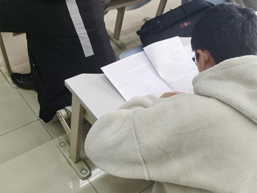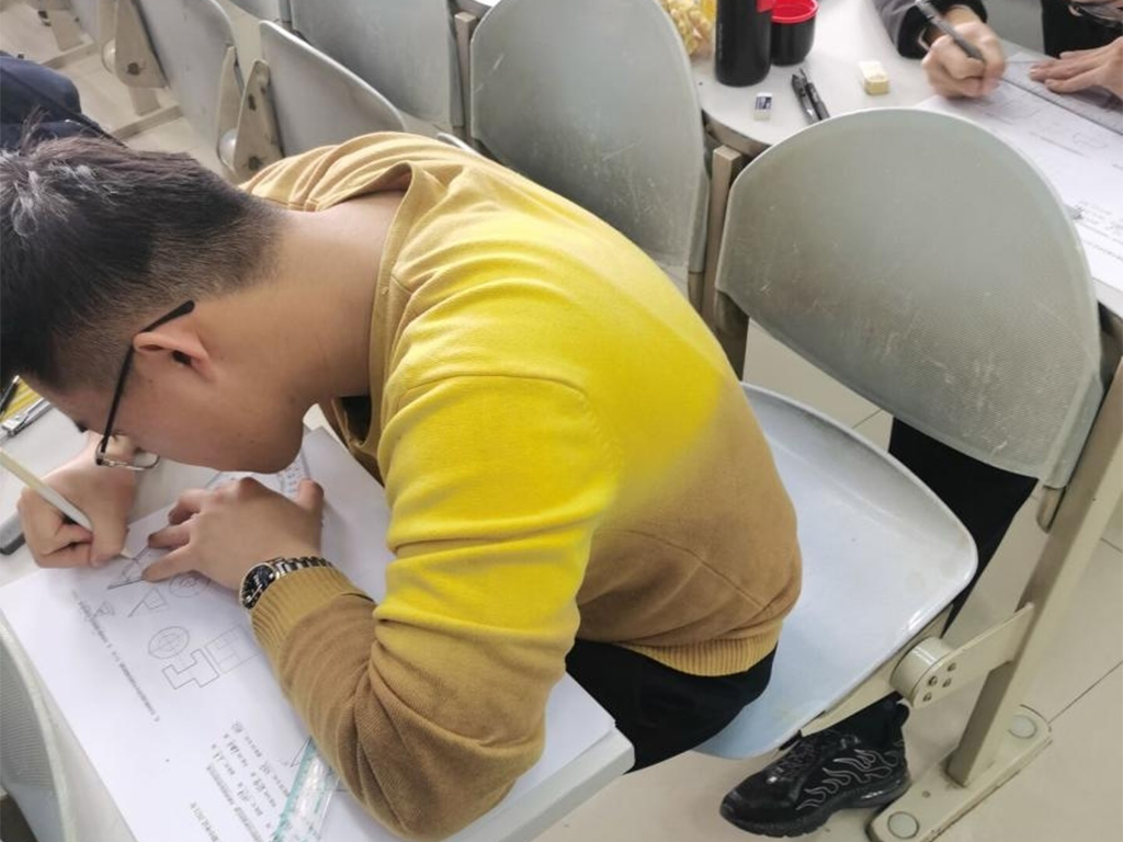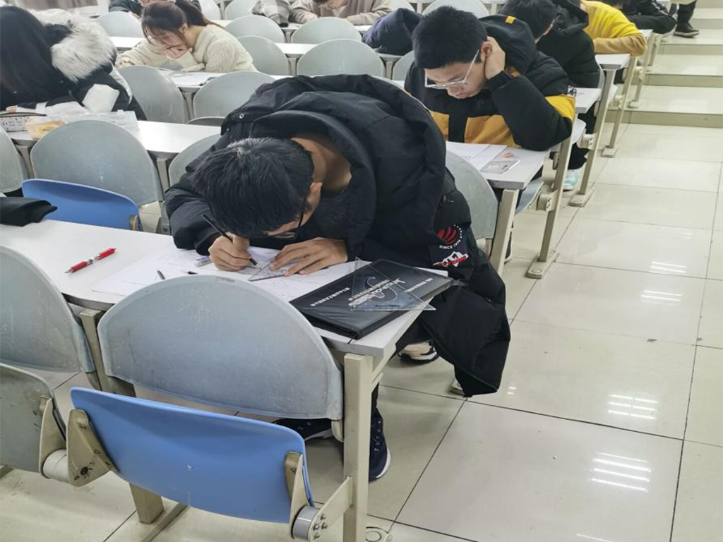 本次期中考试考核学科为工程制图与英语。本次工图考试注重考核考生对制图、正投影、立体投影的基础知识和技能的掌握和运用能力;英语考试试题与英语四级考试试题相仿,能在检验考生的英语听力水平、阅读理解能力与基础写作能力的同时提升考生对四级考试的熟练度。在考试开始前,考生们陆续进入考场,在院学生会和信望爱志愿者协会成员的组织下妥善放置书物并对号入座。待考试伊始,考场安静井然。在工程制图考试期间,考生们认真执尺绘图;在英语考试期间,也尽己所能地写出自己最好的答卷。