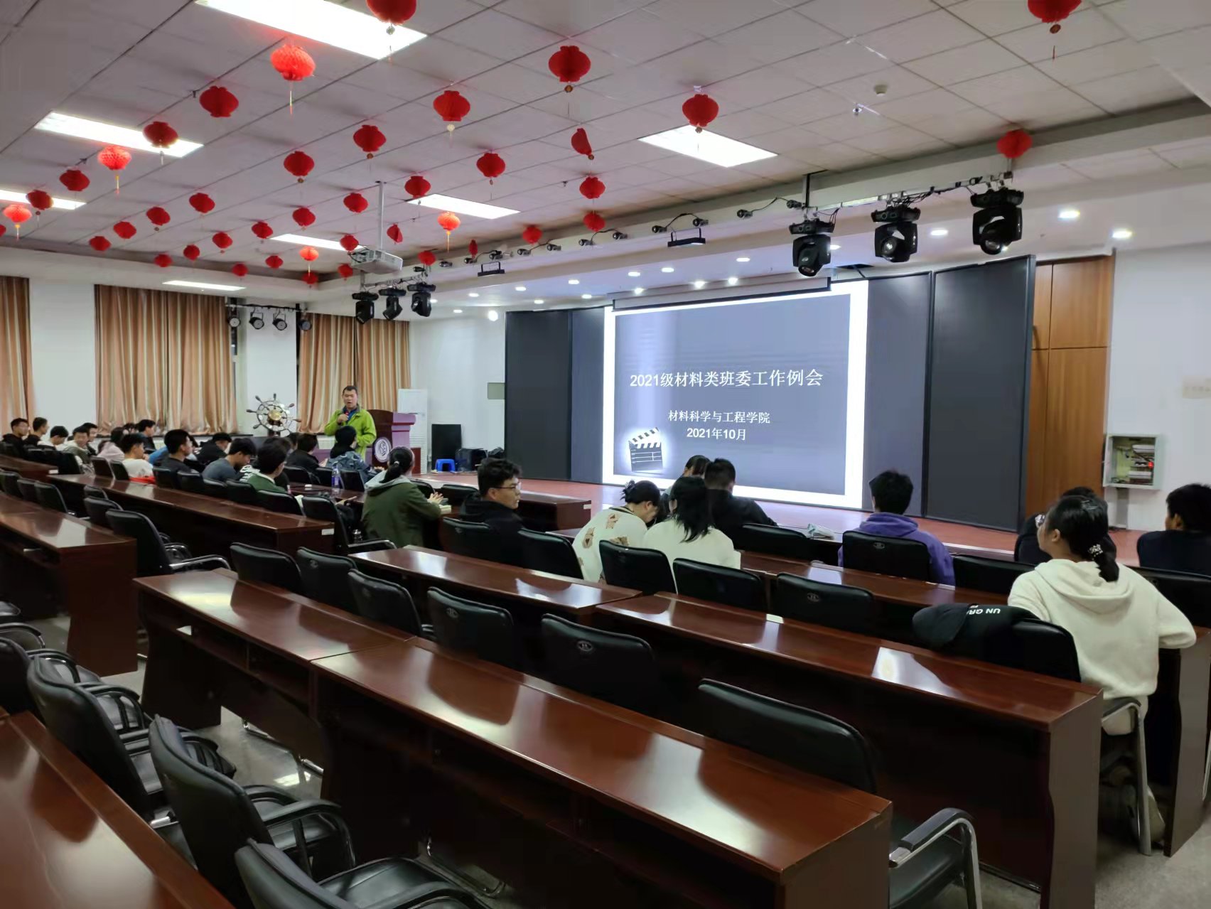 2021级辅导员严冬老师于10月29日在南岭校区逸夫机械材料馆召开2021级材料类班委工作例会,会议由严冬老师主持,2021级材料类全体班委参会。