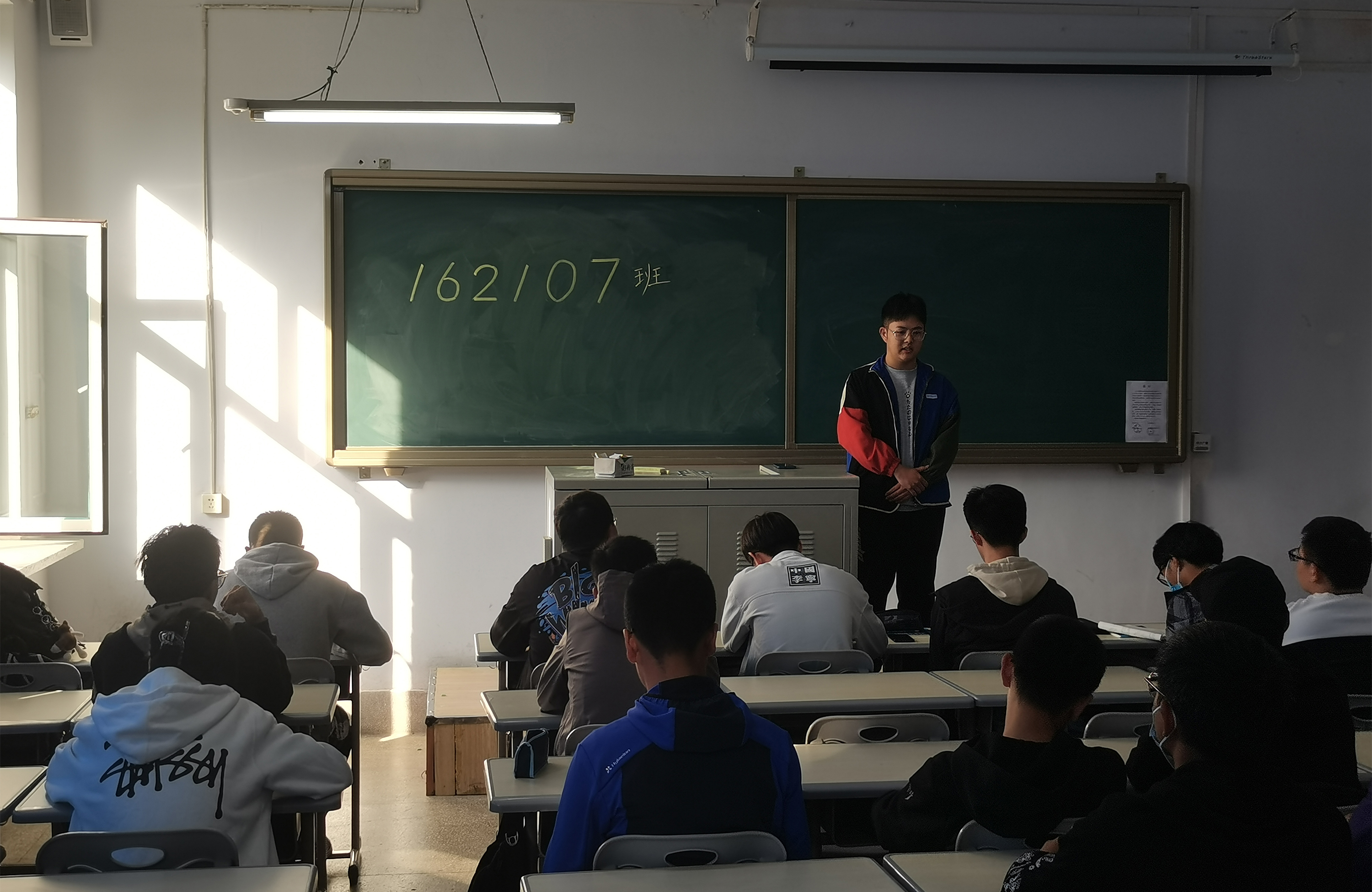 首先,有意愿担任班干部的同学们提前填写申请表,由代班们统一收取,在活动当天,按照提交顺序依次上台发言,对同学们袒露心声,在每位同学发言完毕后,代班们会依据不同情况提出相应的问题,以回答作为考核的一项标准。当全部同学发言完毕后,由代班们向全体同学发放投票表,公开进行唱票,本次会议将选出票数前六位的同学参加最终面试。同学们与会热情高涨,落选的同学也依旧保持着积极的态度,为其它同学加油,最终,唱票结果公布在黑板上后,统一拍照存档,各班也分别进行了集体大合照,此次活动圆满结束。