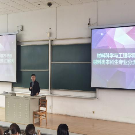 与工程、无机非金属材料工程、材料成型及控制工程各位系主任从本专业学科概况、师资力量、专业特色优势、重大科研成果、毕业生就业去向等方面全面深入地向同学们进行了讲解和阐述。会议还安排2019级博士研究生、学院博士兼职辅导员佟昊天,结合自身学习经历、学科理解以及以往历届毕业生就业信息数据,为2019级同学在专业选择和未来职业生涯规划方面提供可行性建议和心得经验分享。