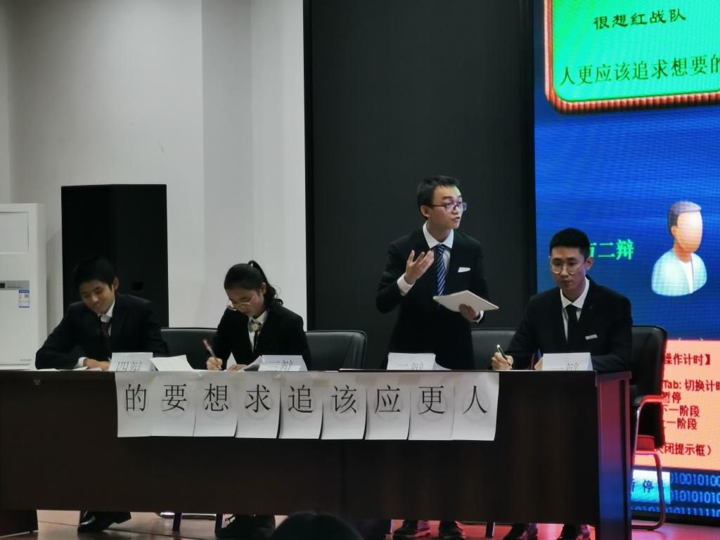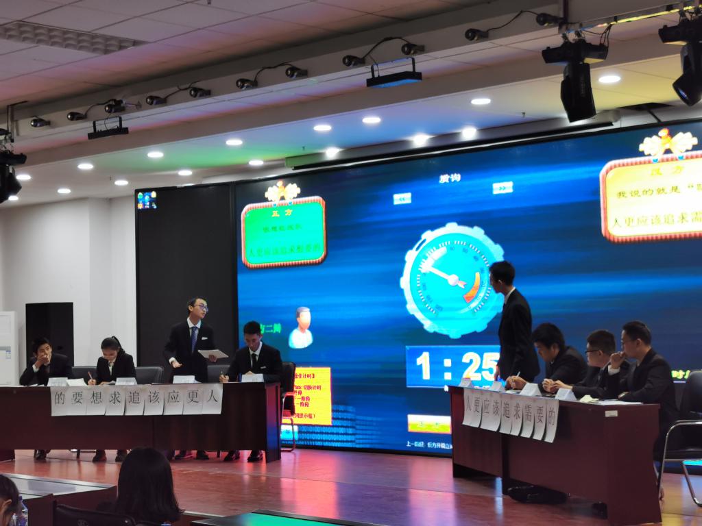 本次辩论赛的辩题为“人更应该追求想要的还是需要的”。正方持“人更应该追求想要的”论点,条理清晰地阐述己方观点。同时反方以“人更应该追求需要的”破题立论,反驳正方观点,措辞精辟,言辞犀利。在对辩盘问阶段,双方针锋相对互不相让,侃侃而谈,场下掌声连连响起。随后的自由辩论阶段,气氛达到白热化阶段,八位辩手你来我往,进行激烈的交锋,场面扣人心弦。正方稳扎稳打,不断举出事实证明,攻守浑如一体。同时反方也不断找出例子进行反击。最后正反方分别总结陈词,梳理己方的观点,点出对方的漏洞,给观众留下深刻印象。比赛结束后,经过评委十分慎重而认真的商议,最终评出本场比赛的获胜方为正方九班,最佳辩手为正方四辩。九班斩获冠军,十班获得亚军,十一班获得季军,本届色色啦