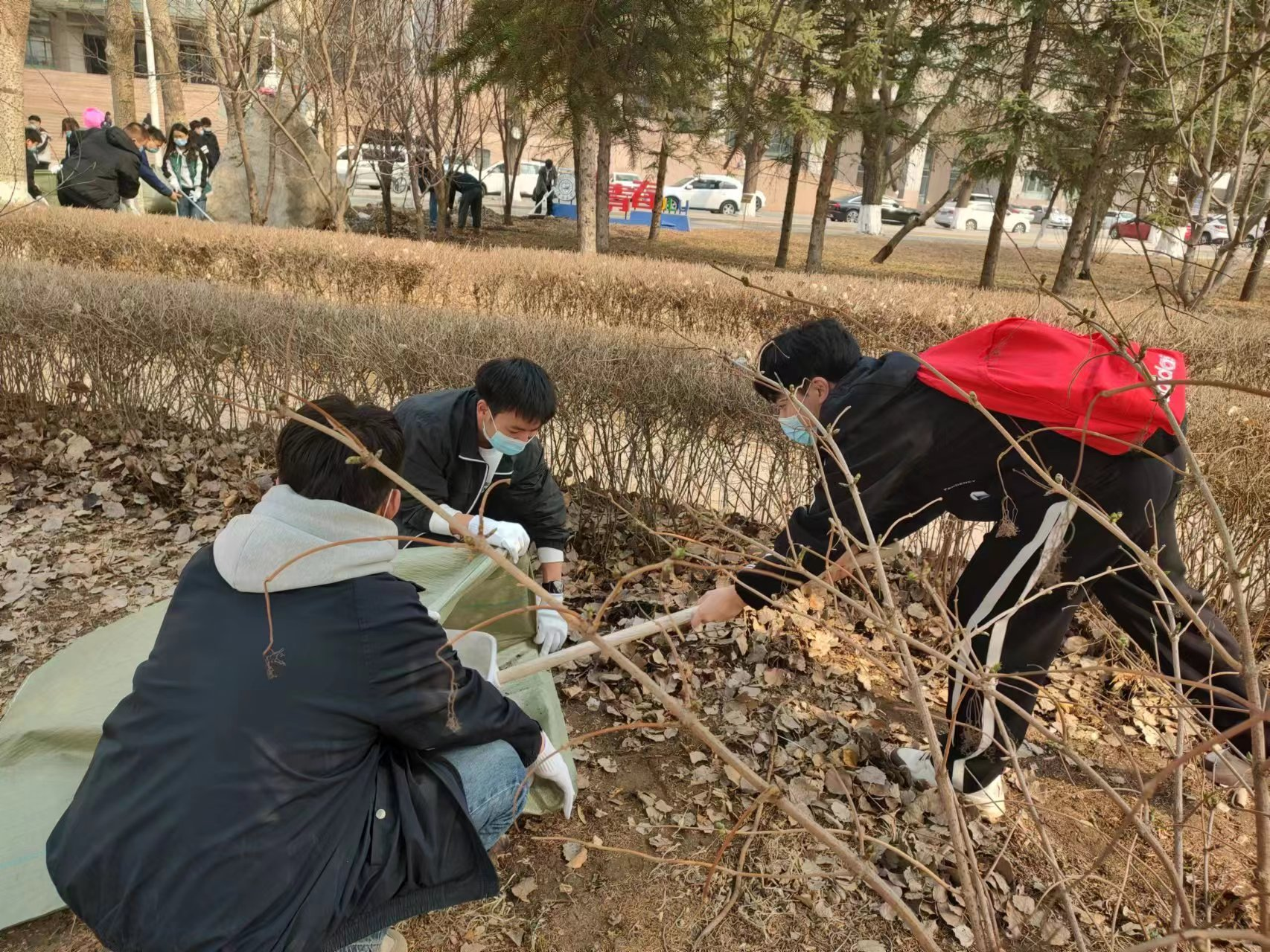 为确保此次活动有序进行,后勤服务中心老师提前为同学们分发口罩、手套以及打扫工具,并细心讲解扫落叶和收落叶工具的用法。活动伊始,同学们在老师的安排下到达指定区域并自行分工。紧接着开展起如火如荼的清扫,同学们秉持认真负责的精神,团结合作,互相帮助的要求。经过将近两小时的努力,圆满完成此次活动。