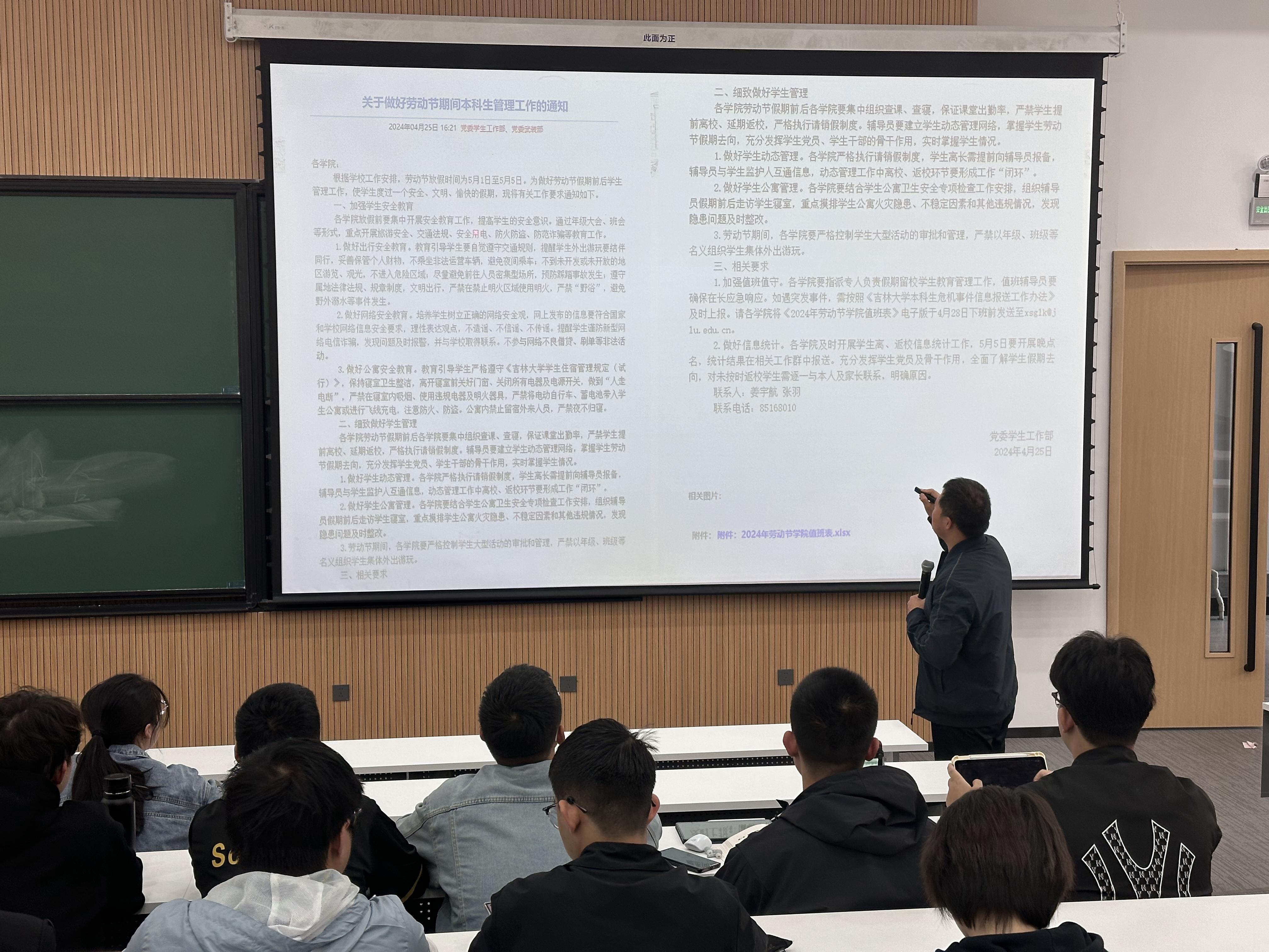 为进一步加强班委成员间的沟通协作,做好期中期间的各项工作,确保劳动节期间本科生管理工作的安全稳定,2024年4月28日,2021级、2023级本科生辅导员严冬老师,组织召开材料类23级班委工作例会。