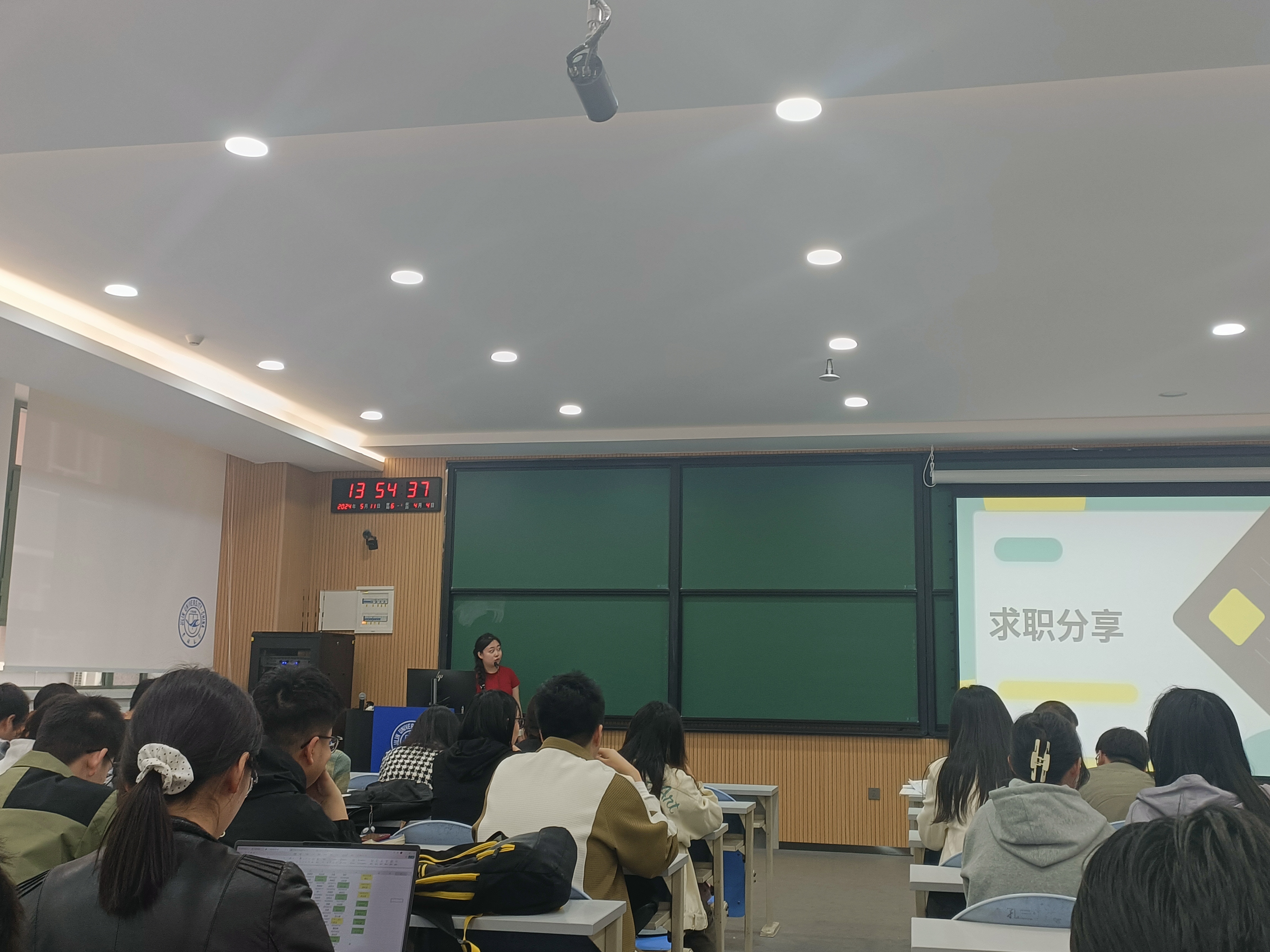 于2024年5月11日下午在逸夫楼b114召开就业指导专题讲座,会议由学院2021级、2023级本科生辅导员严冬老师主持。