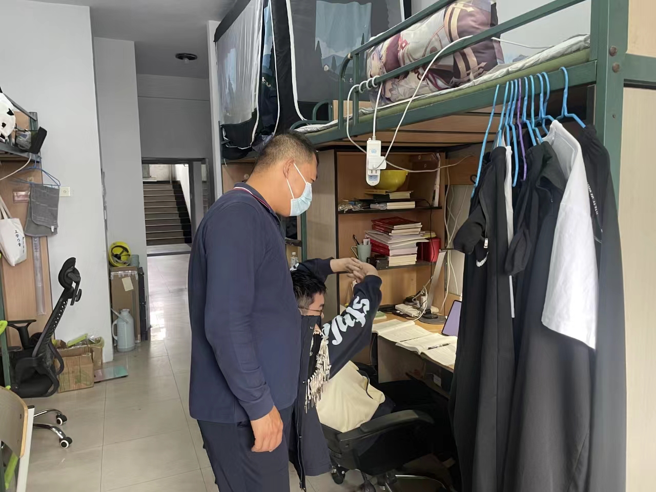 走访过程中,严冬老师详细询问了学生的学习、生活情况,排查了寝室的安全隐患,针对学生寝室实际情况,强调了寝室的卫生打扫问题等。针对学生进入大四年级的迷茫等情况,认真了解学生的实际困难和问题,针对学生们提出的问题和困难,给予了积极的建议和解决方案。