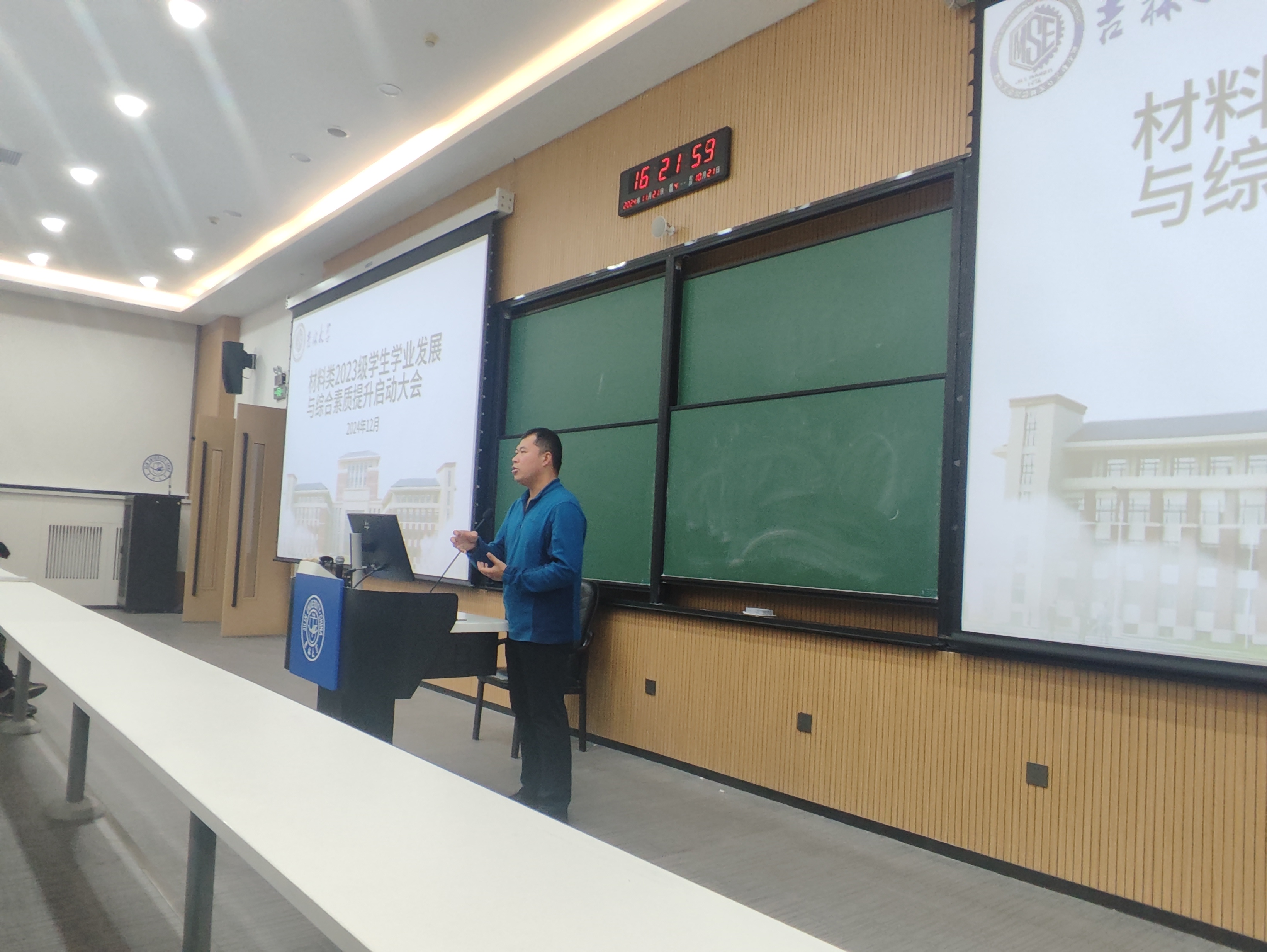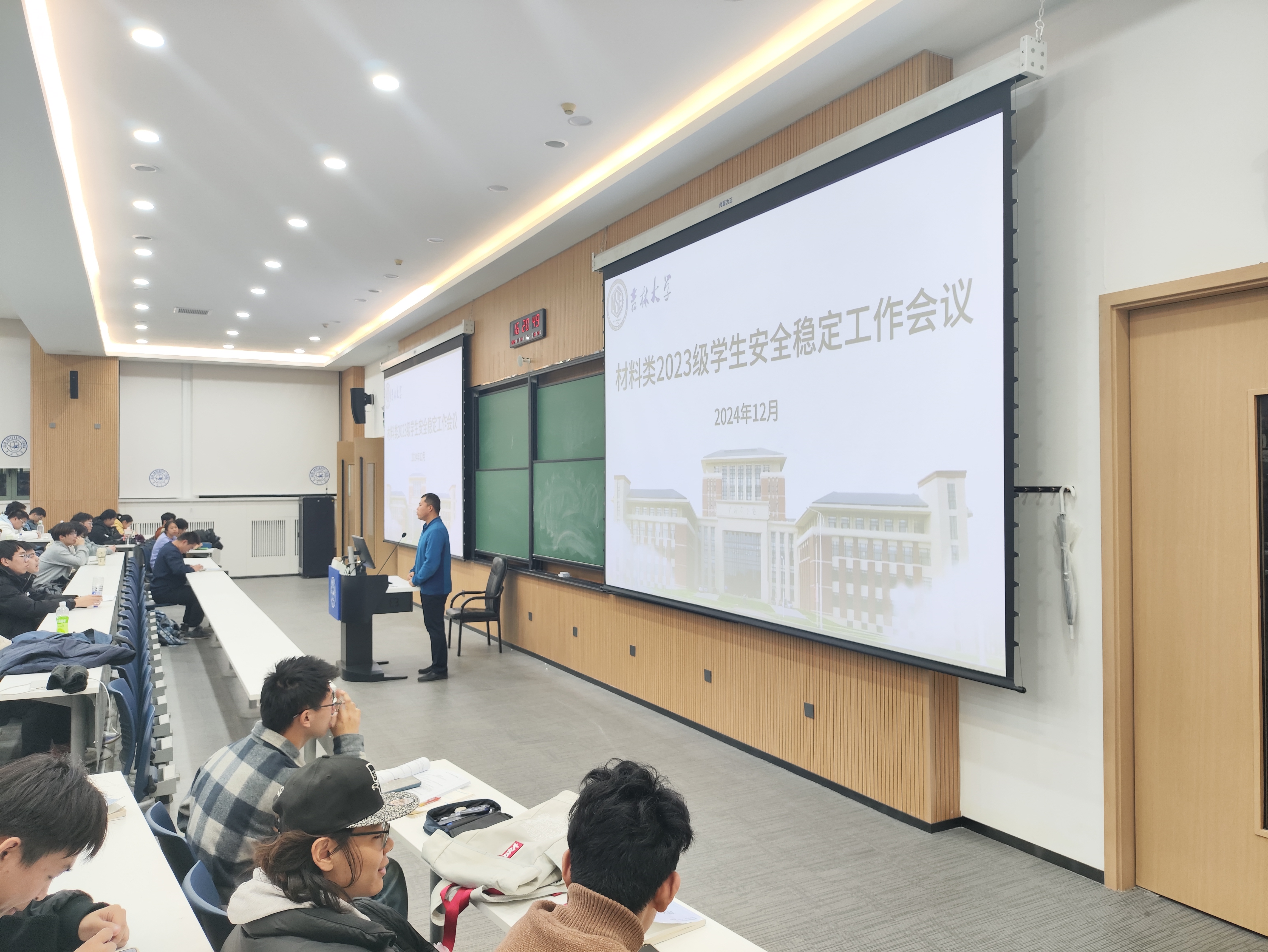 2024年11月21日下午,学院成功举办了学生学业发展与综合素质提升启动大会暨安全稳定工作会议。本次会议由2021暨、2023级本科生辅导员严冬老师主持,旨在为全体2023级材料类同学学生学业发展与综合素质提升提供指导。