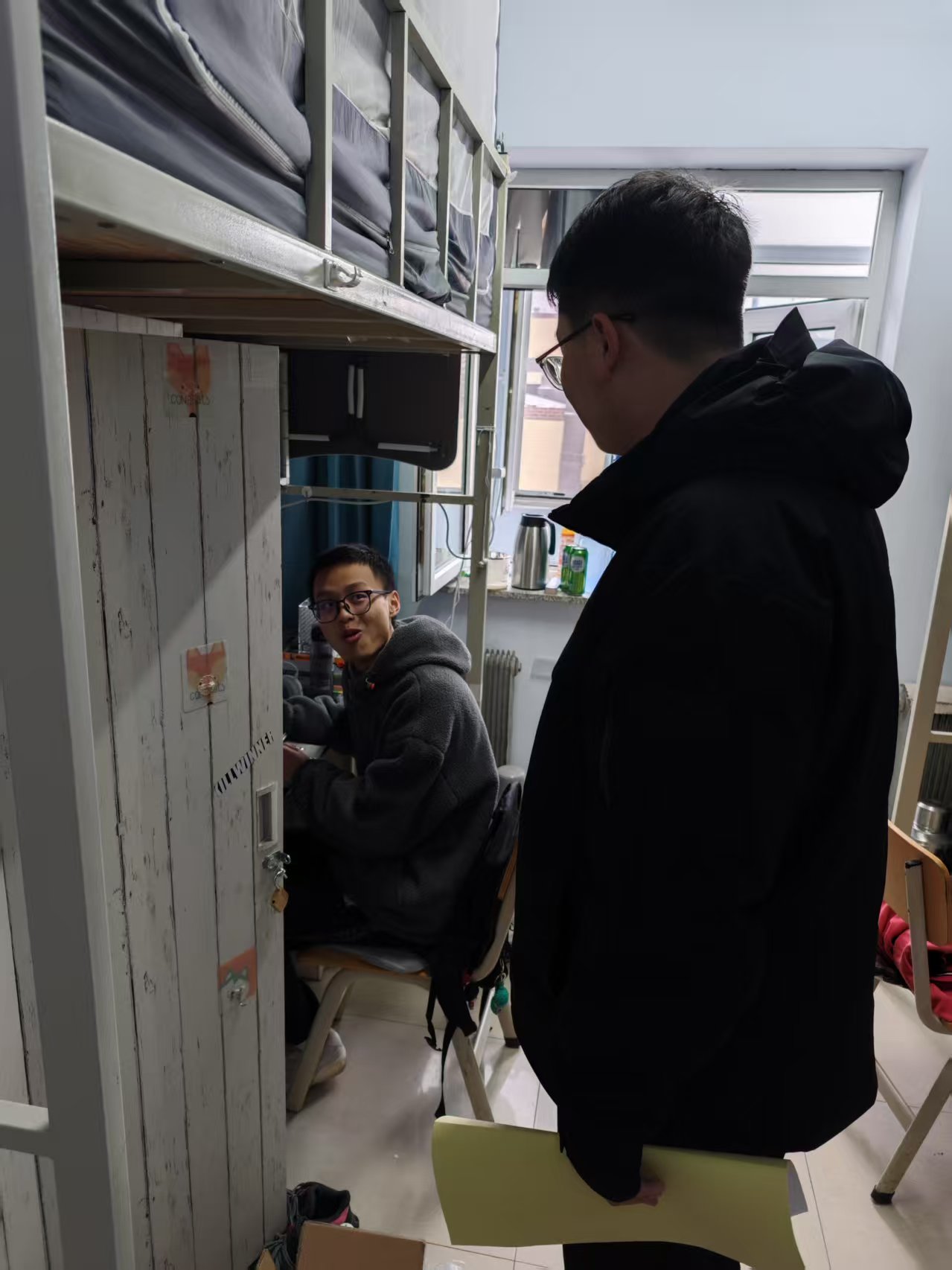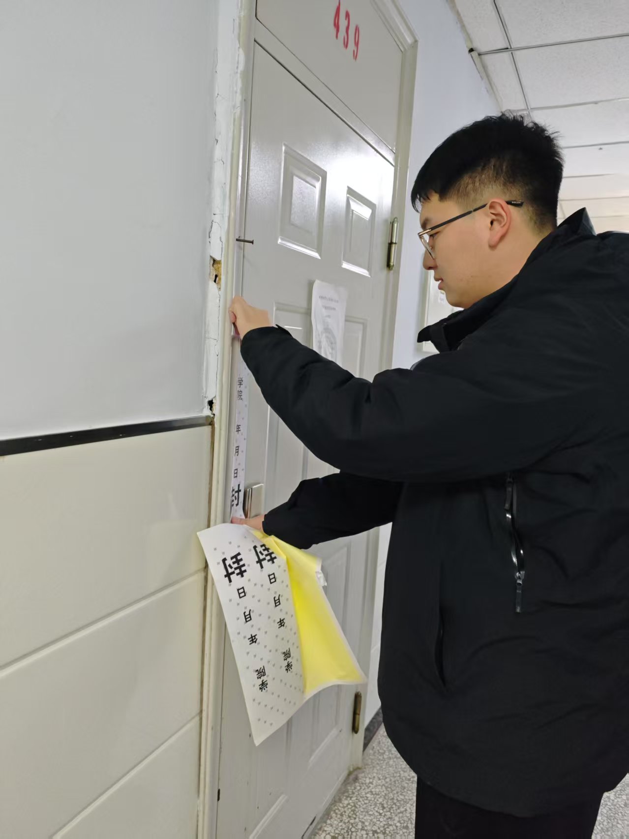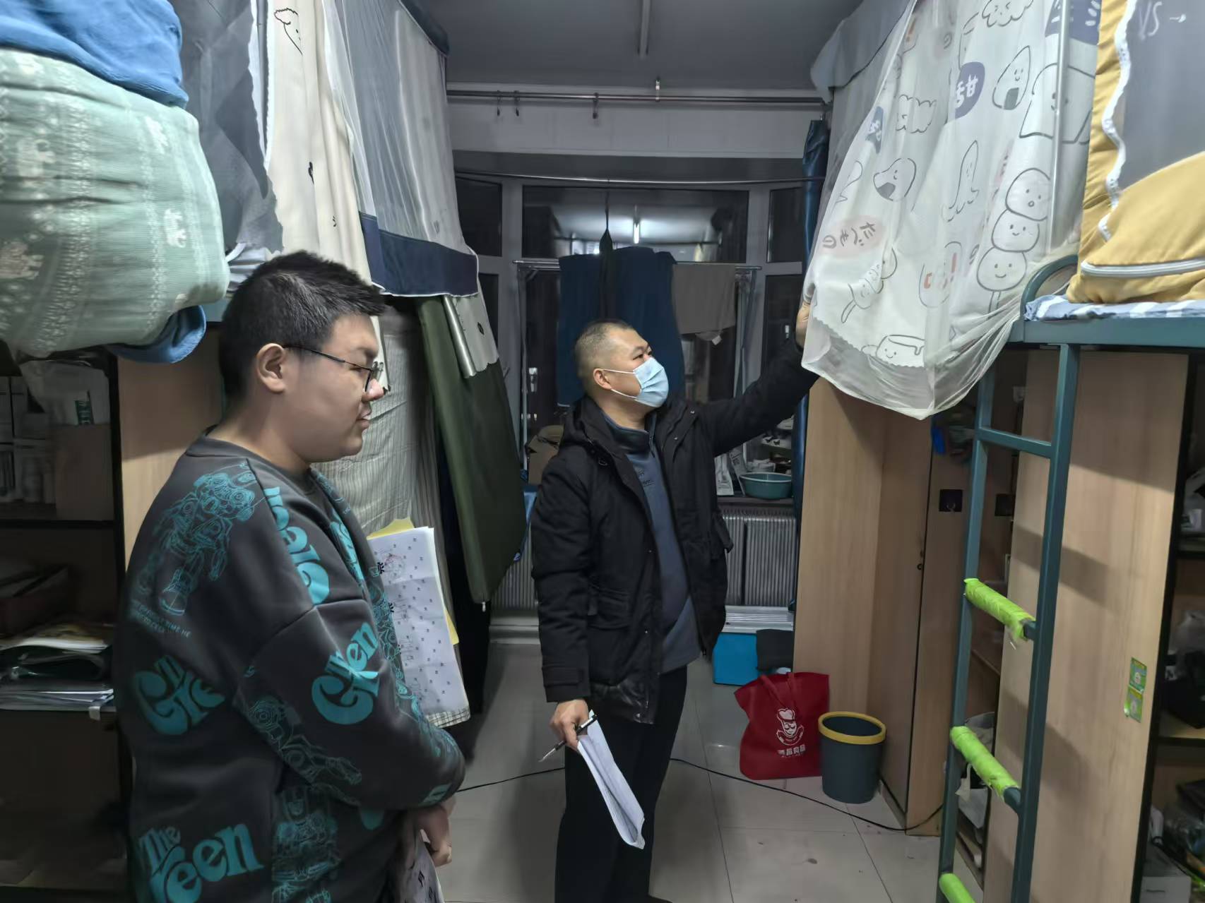 本次宿舍检查覆盖学院所有学生宿舍,重点检查寝室用电用水安全、门窗锁闭情况及卫生环境。对已离校的学生宿舍,辅导员逐一张贴封条,确保假期宿舍安全管理到位。检查过程中,对发现的安全隐患及时整改,对宿舍物品整理不规范等问题进行了指导。