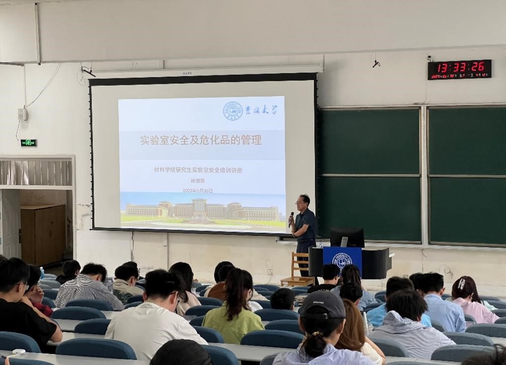 首先曲贵文副书记代表学院领导进行了动员,简短介绍了学院近期的几起安全隐患,表示学校及学院领导高度重视实验室安全问题。本次讲座也是为让同学们学习更多有关实验室安全的知识,提高安全意识。强调实验室安全从来都不是某一单方的事情,需要由管理方、各导师以及参与实验的各位同学们共同建设。在我们学院学校给所有研究生同学提供实验平台的基础上,要求大家严格遵守实验室的各项规章制度。此次培训结束后会有通过性的考试,如未通过则不能进入实验室做实验,在今后学院也会加强实验室的管理,如有违规操作,一律严肃处理。