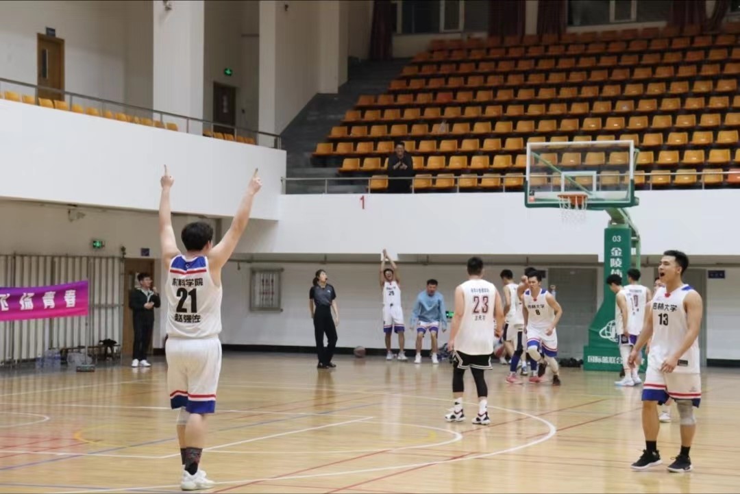 八强赛首场面对上届第四名仪电学院,整场比赛一直十分胶着,对抗激烈,双方交替领先,直到第四节最后3分钟我队取得六分的微弱领先,但由于防守端的失误,导致比赛还剩5秒的时候被对手追平,暂停过后,9号球员观察到对方的防守漏洞将球传给21号两分打进准绝杀,拿下比赛胜利杀入四强。