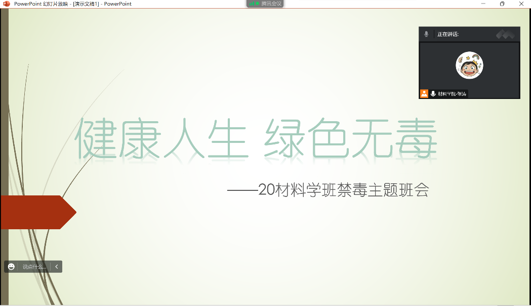首先,同学们通过全国青少年毒品预防教育数字化平台开展线上学习,里面有禁毒知识的讲解,通过观看视频能够让同学们认识和辨别毒品。了解毒品对我们青年学生的巨大危害。此外,我们20材料学班还通过腾讯会议线上开展了“健康人生,绿色无毒”的主题班会,同学们参与的热情高涨,各抒己见,有些同学谈论自己对毒品的认识,还有同学向同学们介绍自己知道的禁毒警察的英勇事迹,他们通过自己的牺牲来为减少毒品对我们中国人民的危害。此外,线上我们还开展了禁毒知识问答环节,让同学们真真切切的了解毒品从而对其原理。在班会的最后,我们带领同学们观看了禁毒纪录片《全球公敌》,这部纪录片深刻将中国边境那些走销毒品的犯罪记录下来,我想更能让同学们认识毒品的危害以及禁毒警察的不易和伟大。